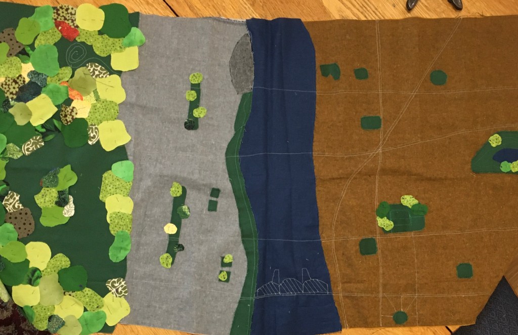When I sew, I call it “working” on the map, but it’s really playing. The artistic process of “do this thing, walk away, come back, have a look, change it, come back later…” is definitely happening, and it is nice to be so completely in charge of something at this odd, “out of my hands” time.