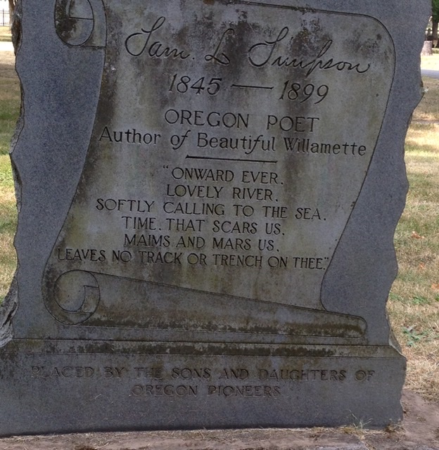I was happy to find a new friend at Lone Fir Cemetery! Mr. Samuel Simpson was a poet in Oregon, living from 1845 to 1899. His most popular piece was called “Beautiful Willamette”, and he was much loved here in Portland.