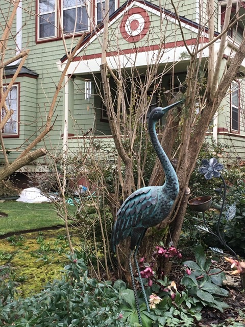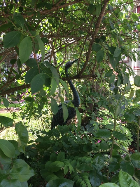 This wonderful heron, for example. Made of brass and perched in the front corner of a garden, he always looks like he could just turn his head and wink at us.