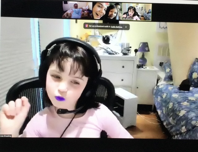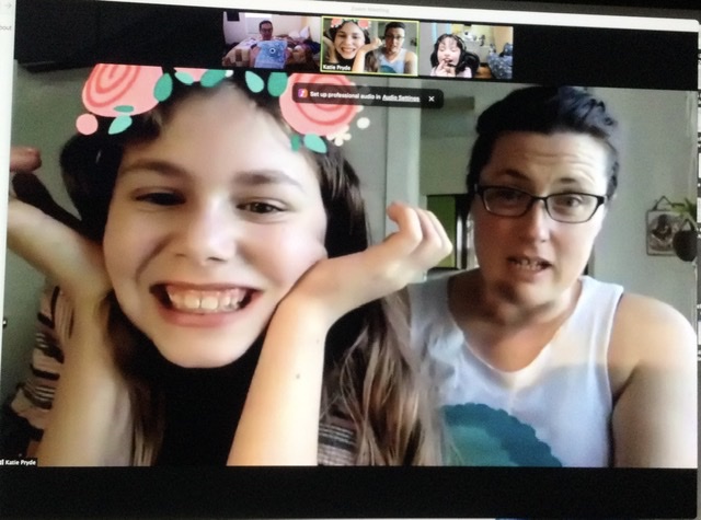Jasper, Kestrel, and Auntie Katie joined us for a while, and you were ‘wearing’, via the zoom filter, purple lipstick. This led to Katie getting a lesson in filters, and then it just got silly.