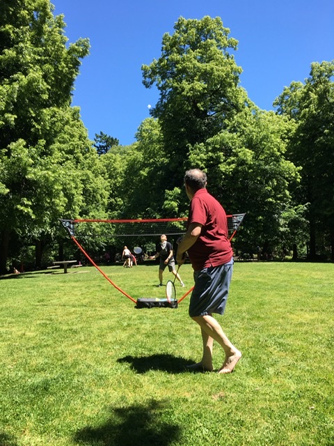 To make sure everyone had fun, we would play two against one, then switch around so each person had a chance to be their own team as well as play with everyone else. It was a slap-happy game, I tell you! Lots of flailing and leaping and picking up birdies we just couldn’t get to.