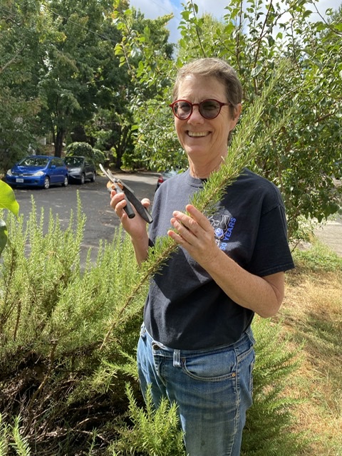 Auntie Bridgett and I took a pair of clippers and a bag to the Blair Community Garden, where a rogue rosemary bush has overgrown its parkway bed and is crowding a parking space.