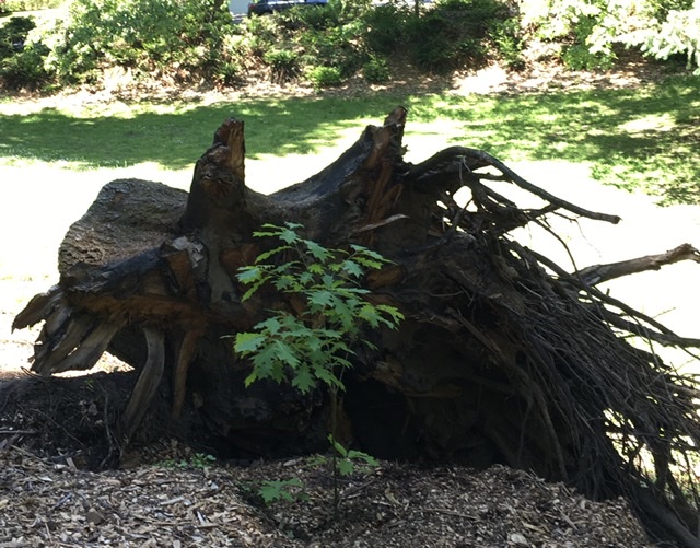 And someone decided that the remaining set of roots should protect a NEW tree, and planted one, right there. We named it Ken.