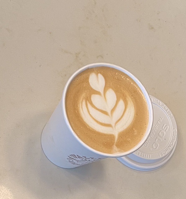 The small shop was crowded, but standing people and servers were wearing masks, and they made beautiful lattes.