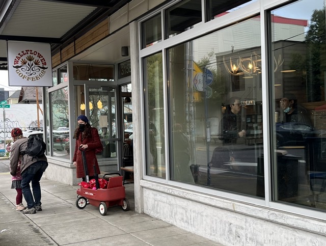 There is a new coffee shop down at 34th and Division, called Wallflower Coffee, and they had their very grand Grand Opening on Sunday. It was a chilly day and rain was predicted, but we tucked the umbrellas in our bags and headed off.