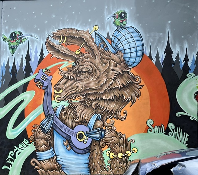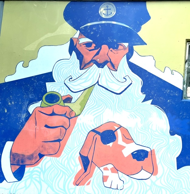 Down on SE 11th, the back and side walls of World Pac Auto Parts have been improved by a few new murals. This fellow reminds me of ”Old Fred” from the Peter Max and Beatles inspired Yellow Submarine.