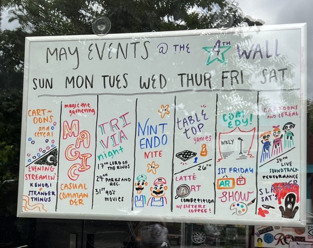There is a really cool new place for coffee, drinks, and snacks just down Hawthorne. It is a movie-themed cafe called The Fourth Wall.