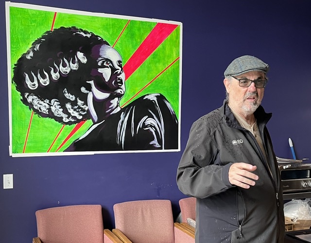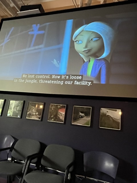 When we were visiting, Blue was just finishing up hosting a birthday party, and The Incredibles was showing. That was fine with us; we love Pixar!