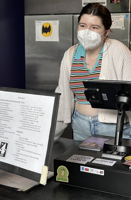 Inside is delightful Blue, who gets your goodies and makes sure you are happy with the movies.