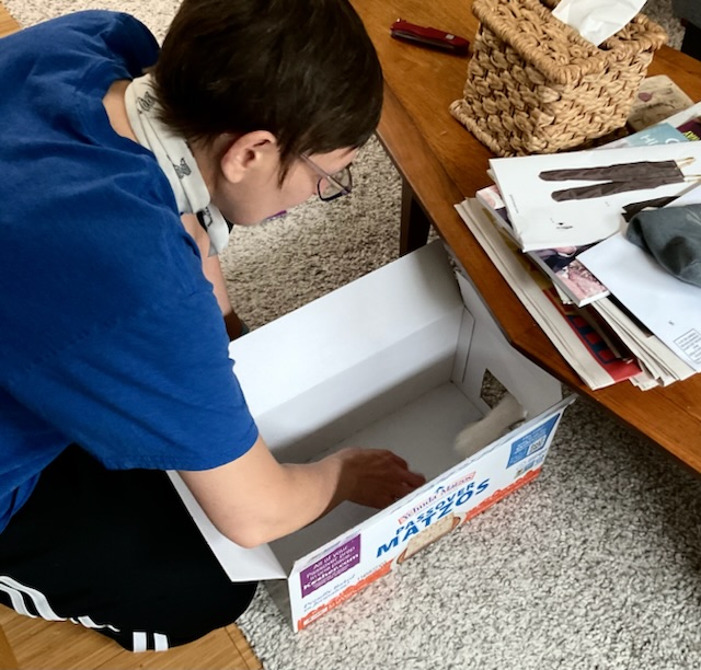 When Mouse was in solid possession of the box, the war was over. She had the box, and we had a happy cat.