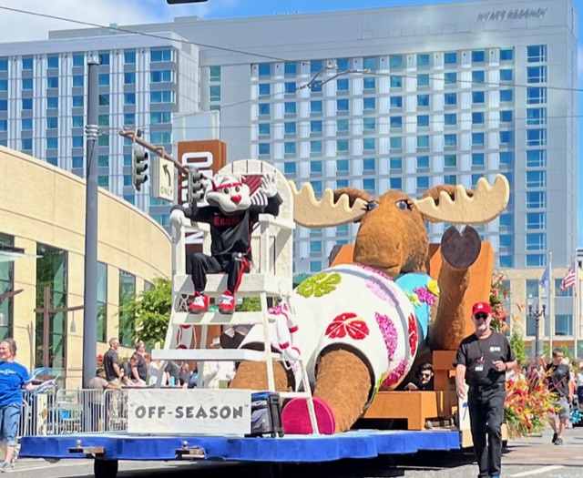 As you can see by this loafing moose on the Alaska Airlines float, they are huge, funny, and beautifully decorated.