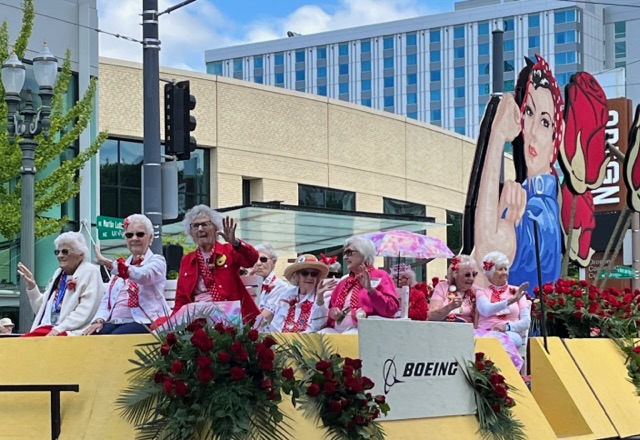This year’s float featured nine ladies who worked for Boeing during the war, who are now in their nineties (and one lady is over 100!) Seeing them waving and happy brought tears to my eyes, because my Momma did that job, too. That might have been her or her friends sitting and waving to the crowd.