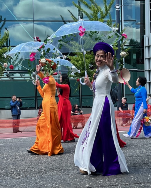 But for me, it is the personal connection of the Portland parade that makes it special. Sitting by the curb, we were just a few feet from the marchers, who waved, smiled or even came over to shake hands. These are our neighbors, friends, and shopkeepers.