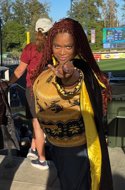 After snafus at security (Only transparent bags! Who knew?) we got inside and realized it was Harry Potter night. This fabulous young lady was happy to put a spell on me.