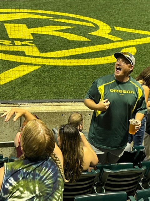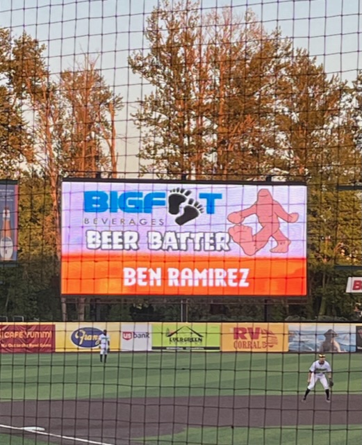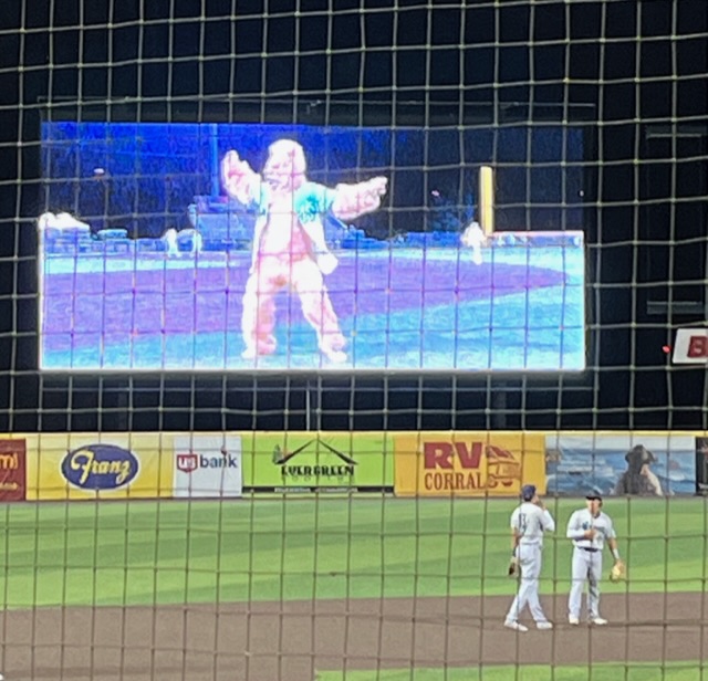 Like other local baseball games we have been to, there are lots of other games between the innings to keep the kids interested. The ones in Eugene all seemed to be sponsored by local businesses. The Sani-Pac Recycling Bungee Tug of War and the Prince Puckler’s Ice Cream Scoop Pitch were very popular.