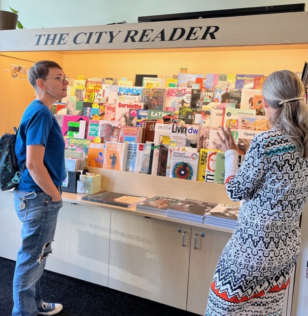 It also includes a wonderful magazine stand, which has been hiding in plain site in the front hallway! The City Reader has been here for ten years, and we have been walking right past it for five. It never registered as a shop. Closed up, it just looks like cupboards.