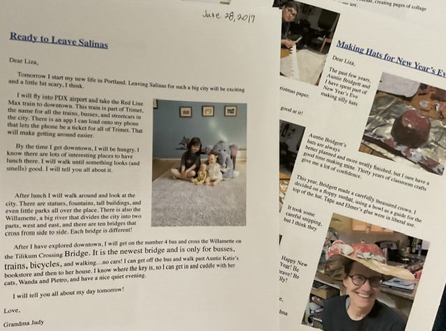 Our friend Jennifer reads Dear Liza and told me that my kids and grandkids would probably like to have the stories when (in many, many years, of course) I check out and go to join the ancestors. This reminded me of your Mommy Olga’s prodding to write the Grandma Judy Commandments, which I also think is a good idea.