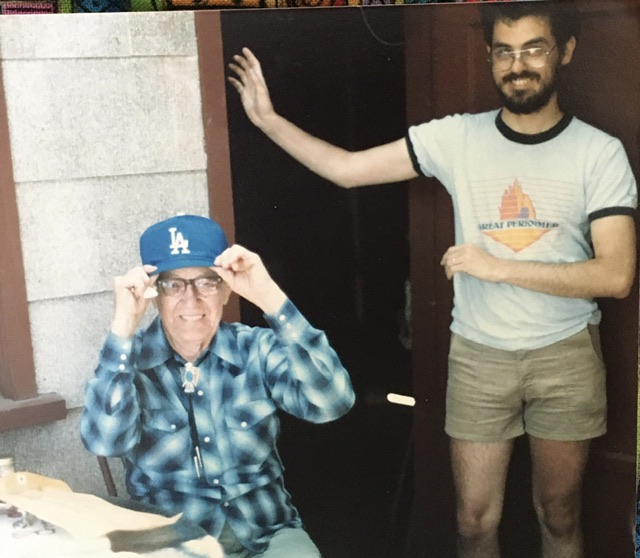 I’m also taking time to read and re-read the Commandments, trying to make them the best they can be. Do they need pictures? Do I have pictures that could work? It’s all a process. And a history lesson! Here is my adopted Grandpa Phil in about 1983 with his brand new Dodgers hat and Grandpa Nelson. I Will probably use this one.