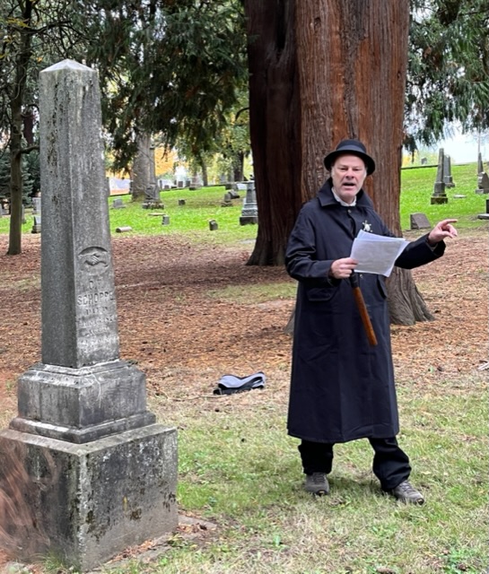 We got to see many of the actors in costume, telling their subjects’ stories of life and death. Jeff Cole did a wonderful job portraying Charles Schoppe, a police officer who was shot in the line of duty on the day before he was to retire from the force.