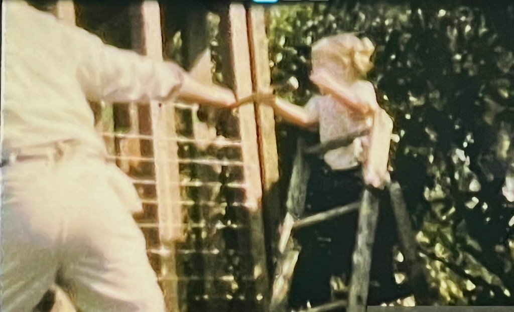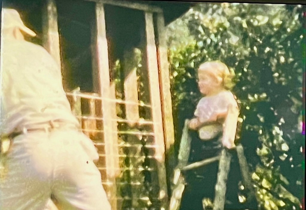 Seeing scenes from my childhood has me cracking up. Look at this home movie sequence of my Dad (your Great-grandpa Lowell) encouraging three -year-old me to help with some construction around the house.