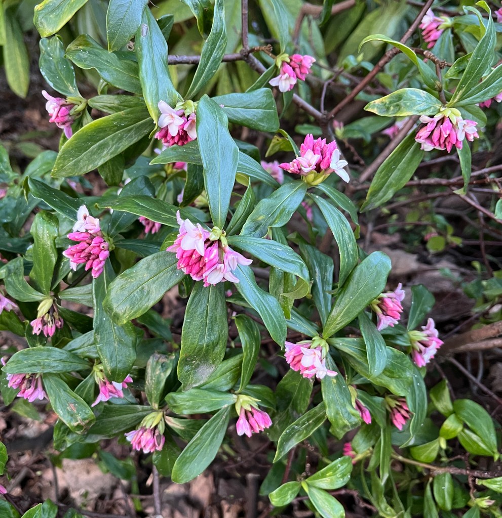 Valentine’s Day is this week, and the world has suddenly gone very pink! Auntie Bridgett and I headed towards Division Street Sunday and found all sorts of pretty things. The Daphne bushes are blooming all over the neighborhood, smelling fabulous.