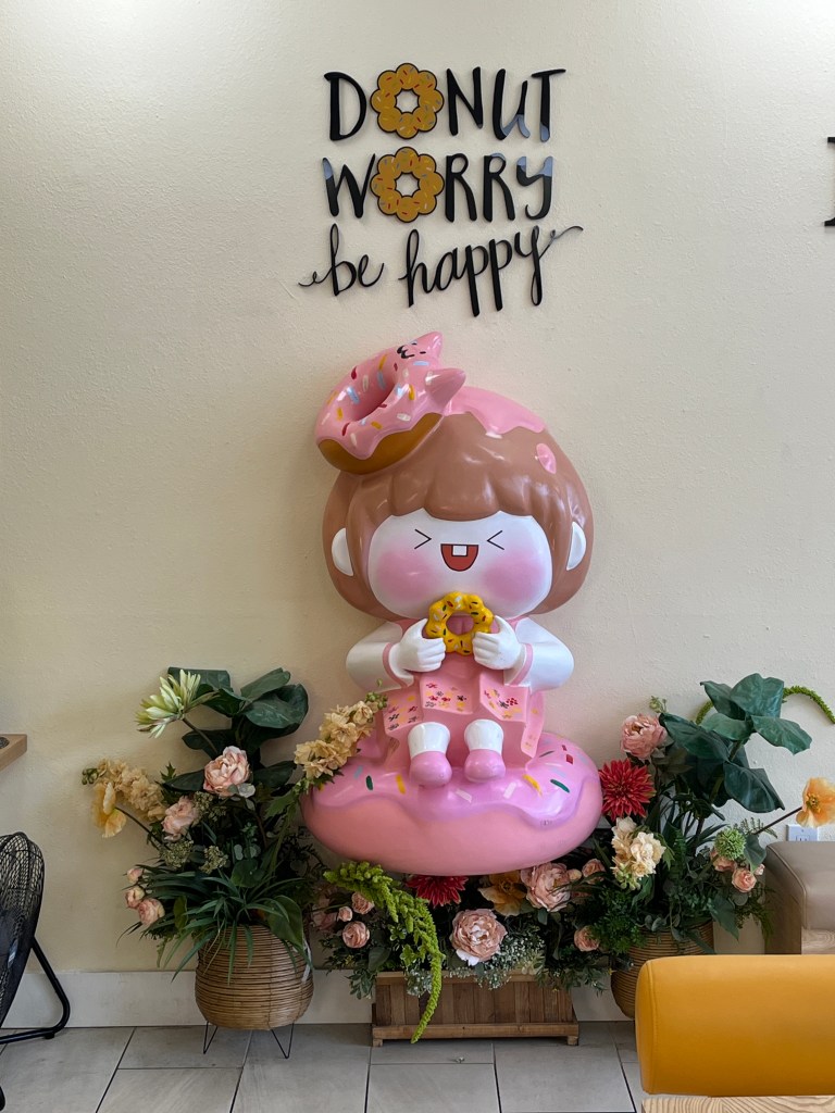 There is a new shop in Hawthorne called Mochinut, where they sell doughnuts, ‘corn dogs’ and other gluten free treats made with rice flour. They also carry all sorts of drinks and even soft serve ice cream. And their sign? PINK.
