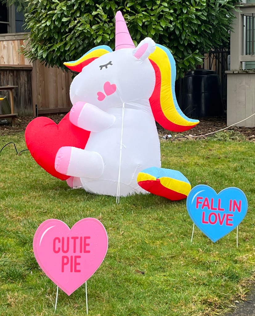 The Valentine’s Day decorations that are popping up in yards are sure pushing the pink agenda.