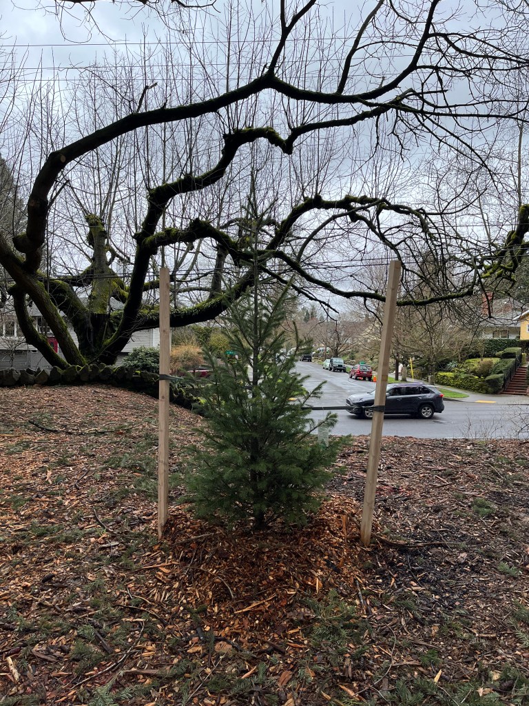 A new Douglas fir by the Wallosaurus (a stone wall with a spiky top) along Cesar Chavez Boulevard has been given the named Dougasaurus, for obvious reasons.