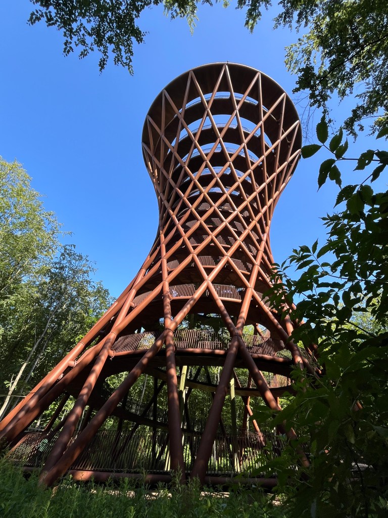 The Forest Tower. This wonderful construction is made of metal, with a coating that makes it look rusty, but is actually a protective finish.