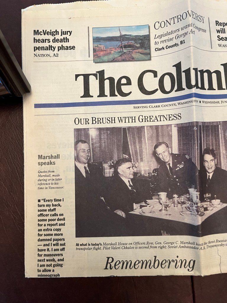 In 1937, a Russian long-distance aircraft, called “Stalin’s Route”, and its crew of three flew 62 hours from Russia, over the North Pole, and were headed to California. Bad weather over the Pole caused them to run low on fuel and they had to land at Fort Vancouver.