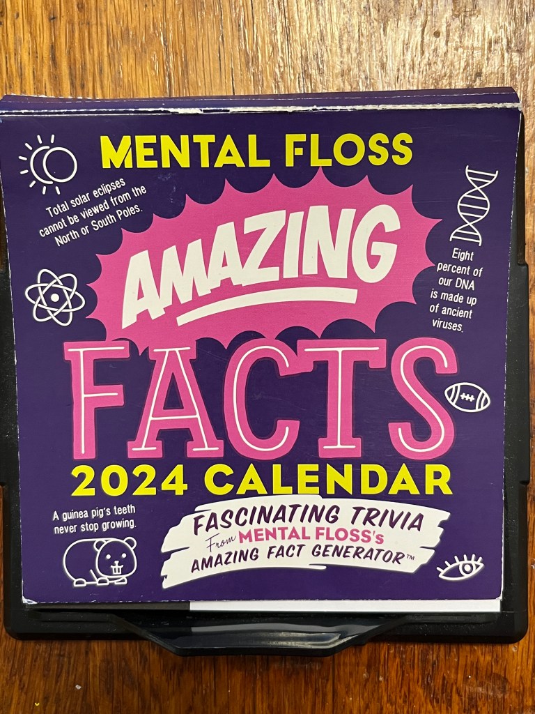 This past Christmas, Auntie Bridgett gave me a “Fact a Day” Trivia calendar, and I have been enjoying it so much. Sometimes, days will go by when I forget to look at it, and then I get to pull a bunch all at once and have several good chuckles.