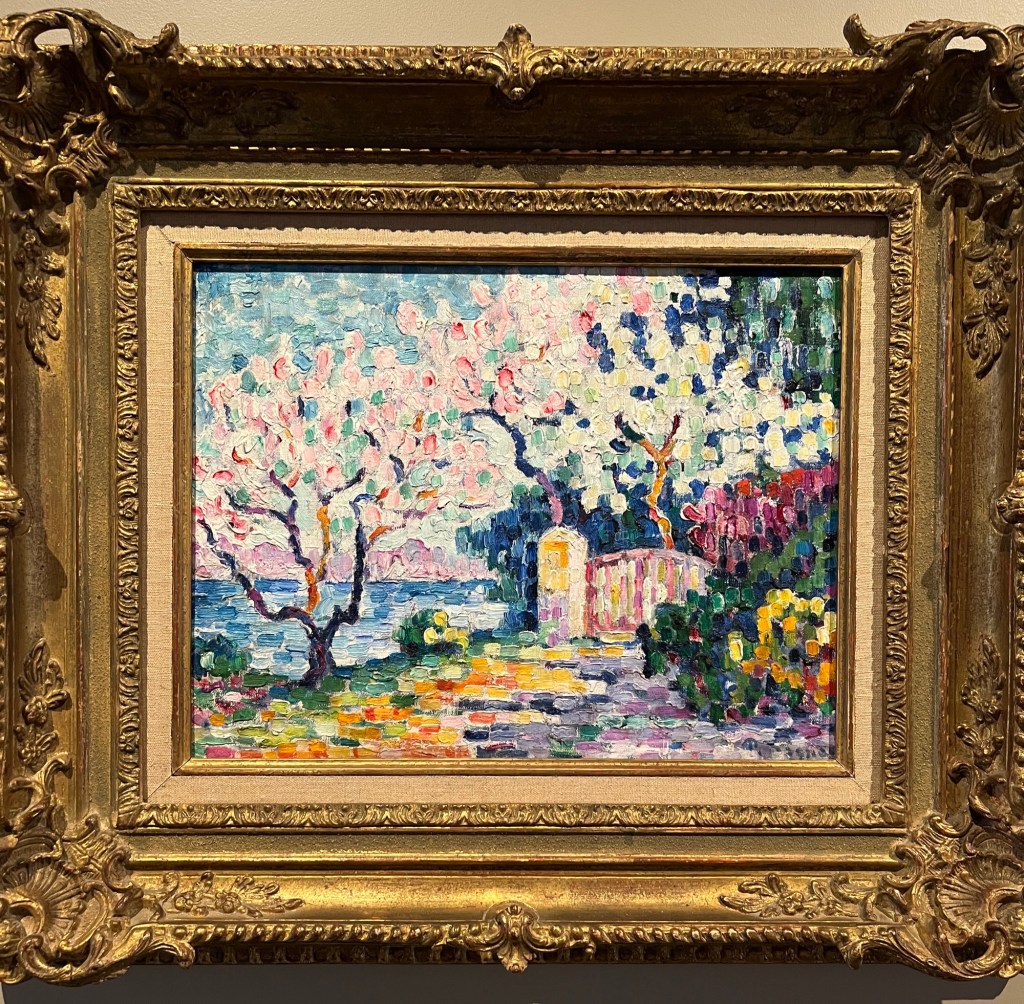And of course, the pointillists were there. I like them because they remind me of quilting, of making a whole out of smaller bits. Paul Signac‘s “Pink Almonds in Bloom” was my favorite today.
