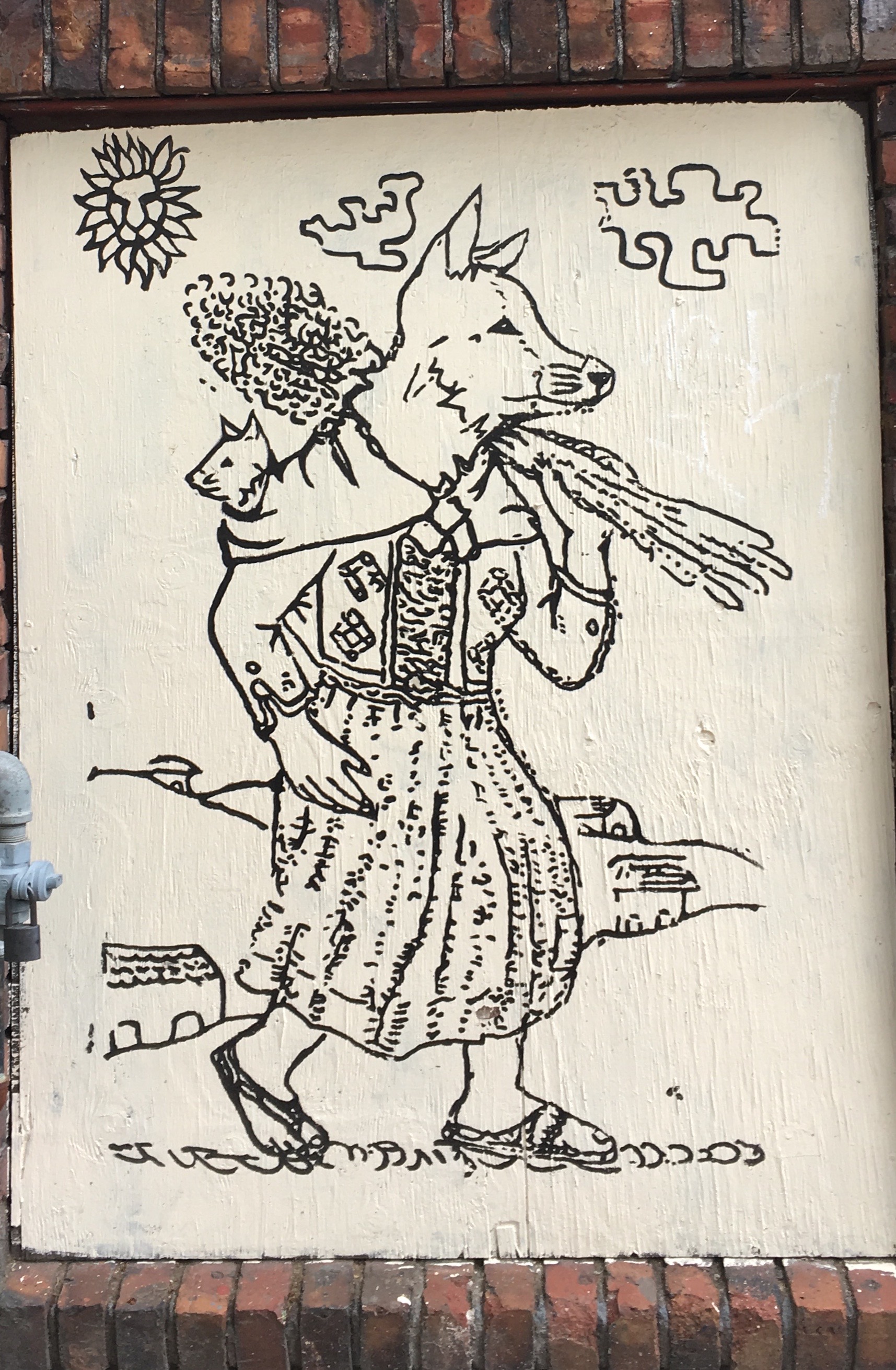 Just across the Banfield Freeway is Gabriel’s Bakery PDX USA. Besides smelling delicious, each of its loading dock doors has a delightful mural, depicting animals helping out with the wheat harvest. Llamas, sheep and even a mama fox and her cub are shown in peasant clothes. They are adorable.