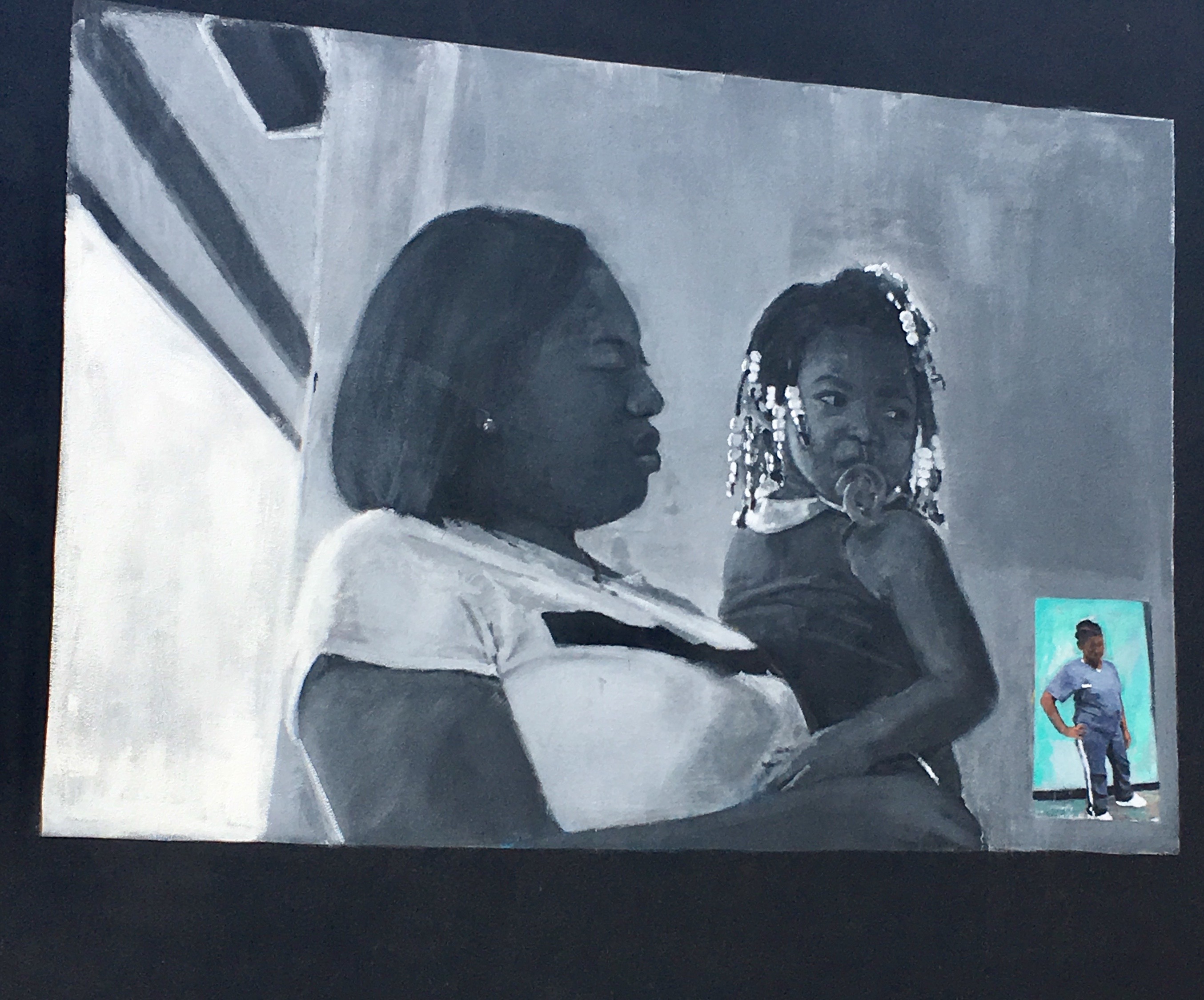 Auntie Bridgett’s new work includes Paris rooftops, remembering our apartment views when we stayed there, and a wonderful big Eiffel Tower piece that makes me homesick.