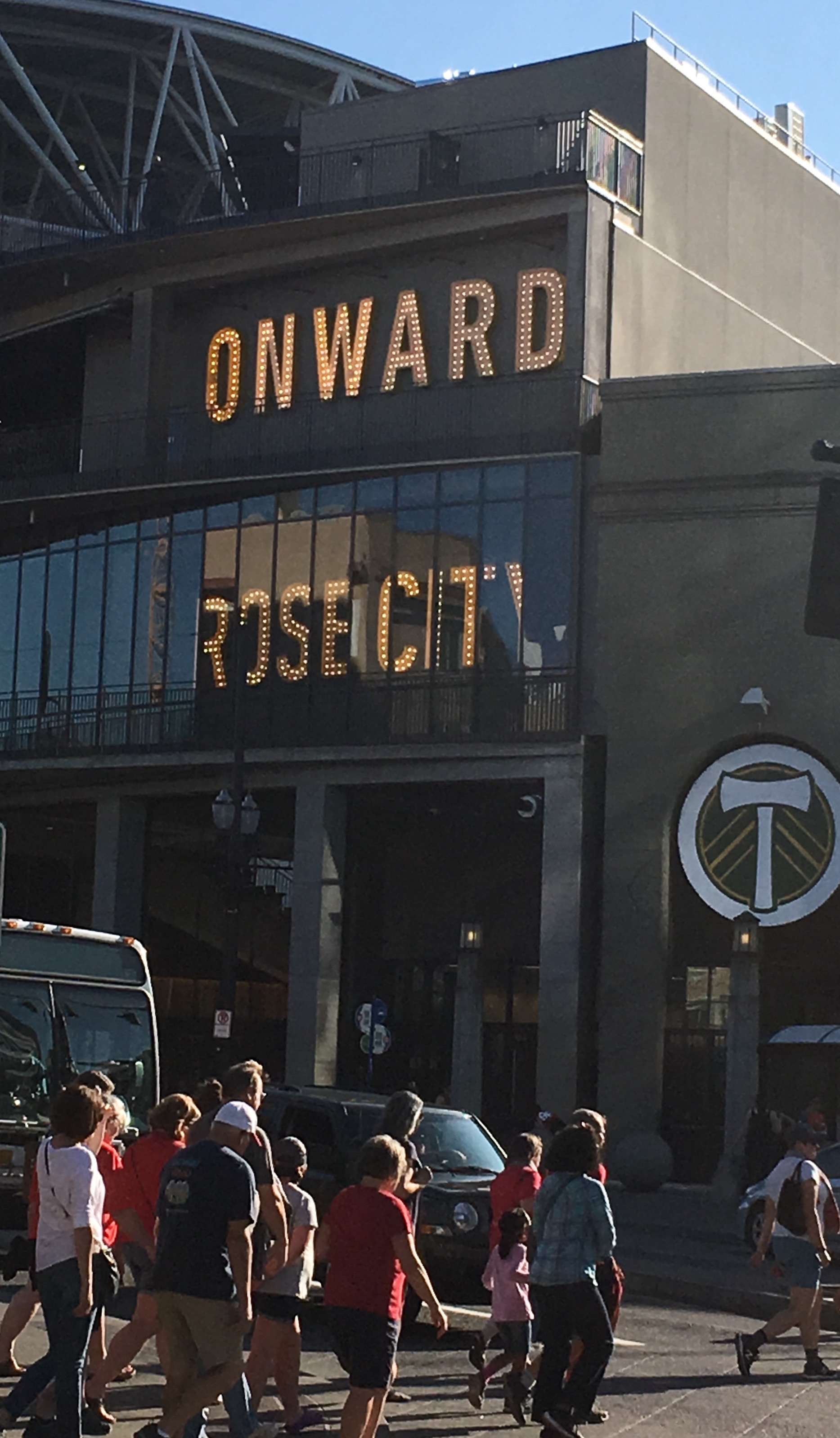 When time ran out and the Thorns had won 5-0, we joined the exiting river and walked a few blocks to catch a bus home. It was standing room only and full of fans, but we were all happy with the thrill of victory.