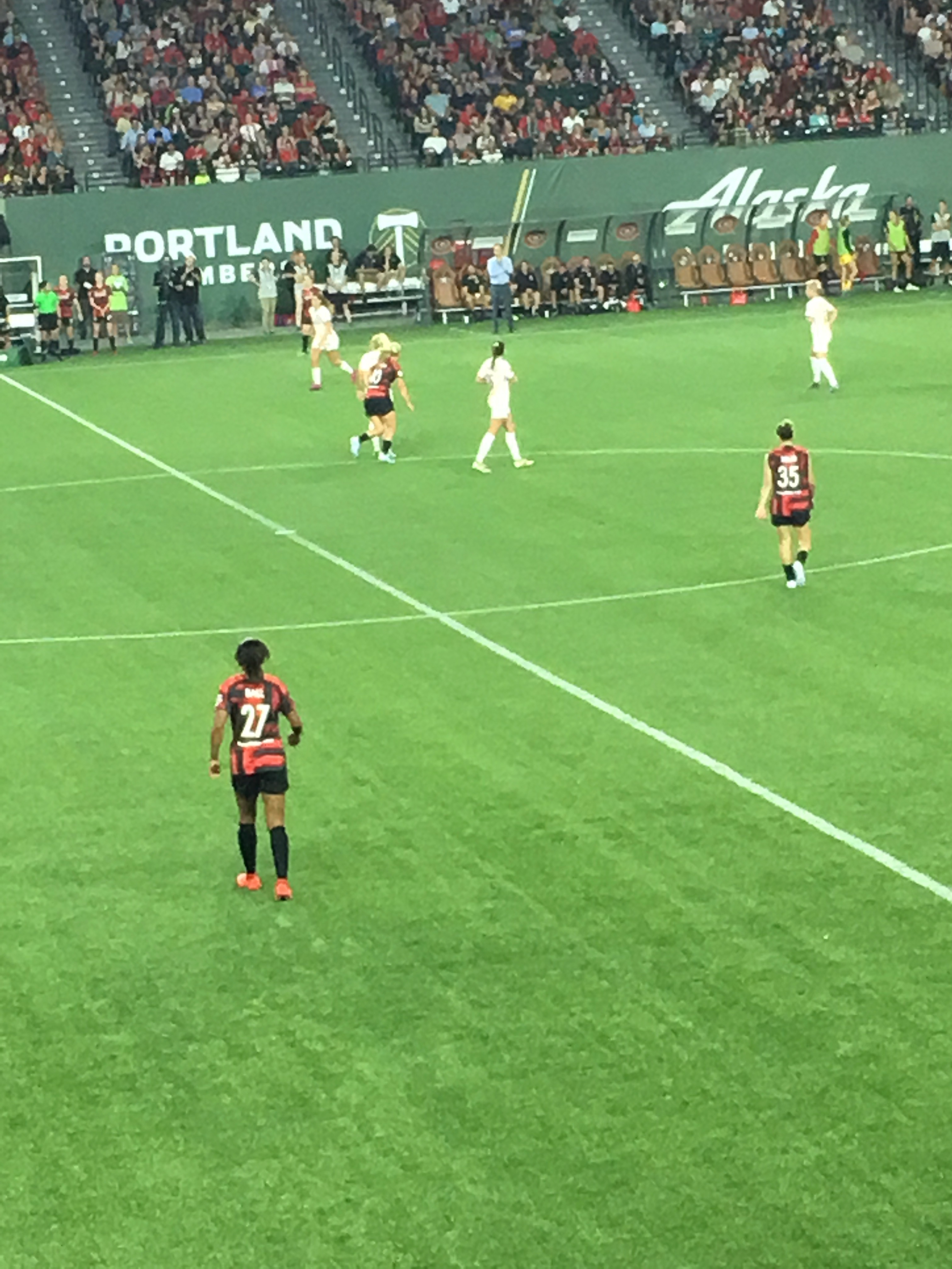 The Thorns are a professional women’s team, and are so good that several of the players were on the International Championship-winning team at the FIFA Women’s World Cup in Paris a few weeks ago. Lindsey Horan and Tobin Heath were on the US team, and others played for their country of origin, like Brazil.