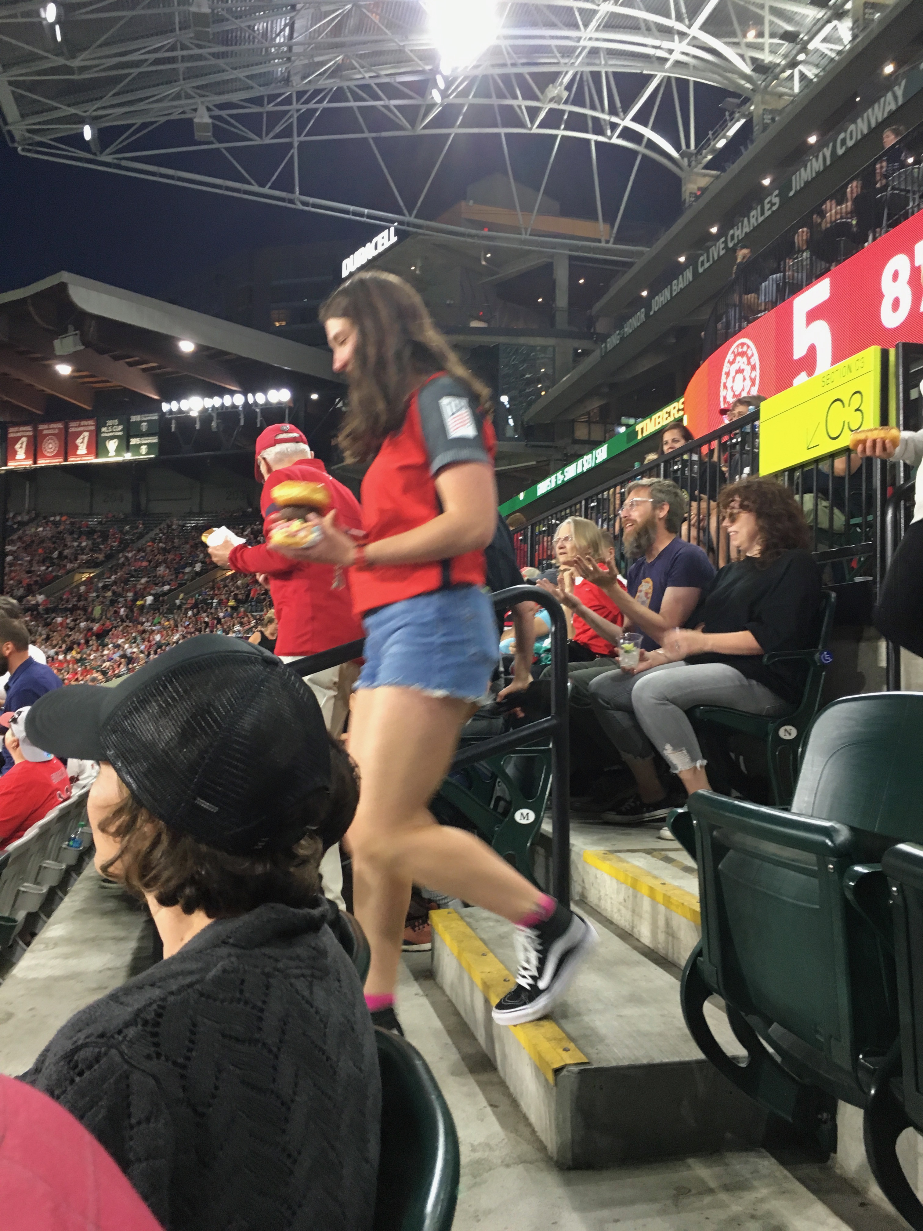 And near the end of the match, VooDoo Doughnuts opened up a table at the top of the section, and you could walk up and take as many as you could carry! Kids and parents were fetching for the family. It was amazing!