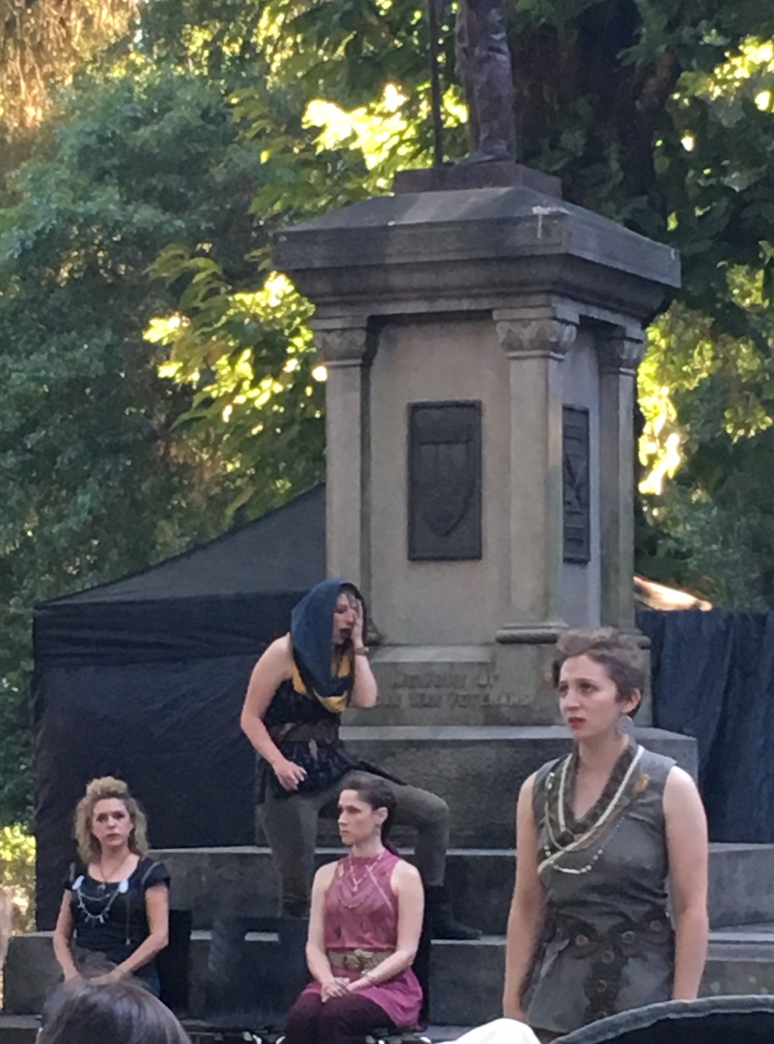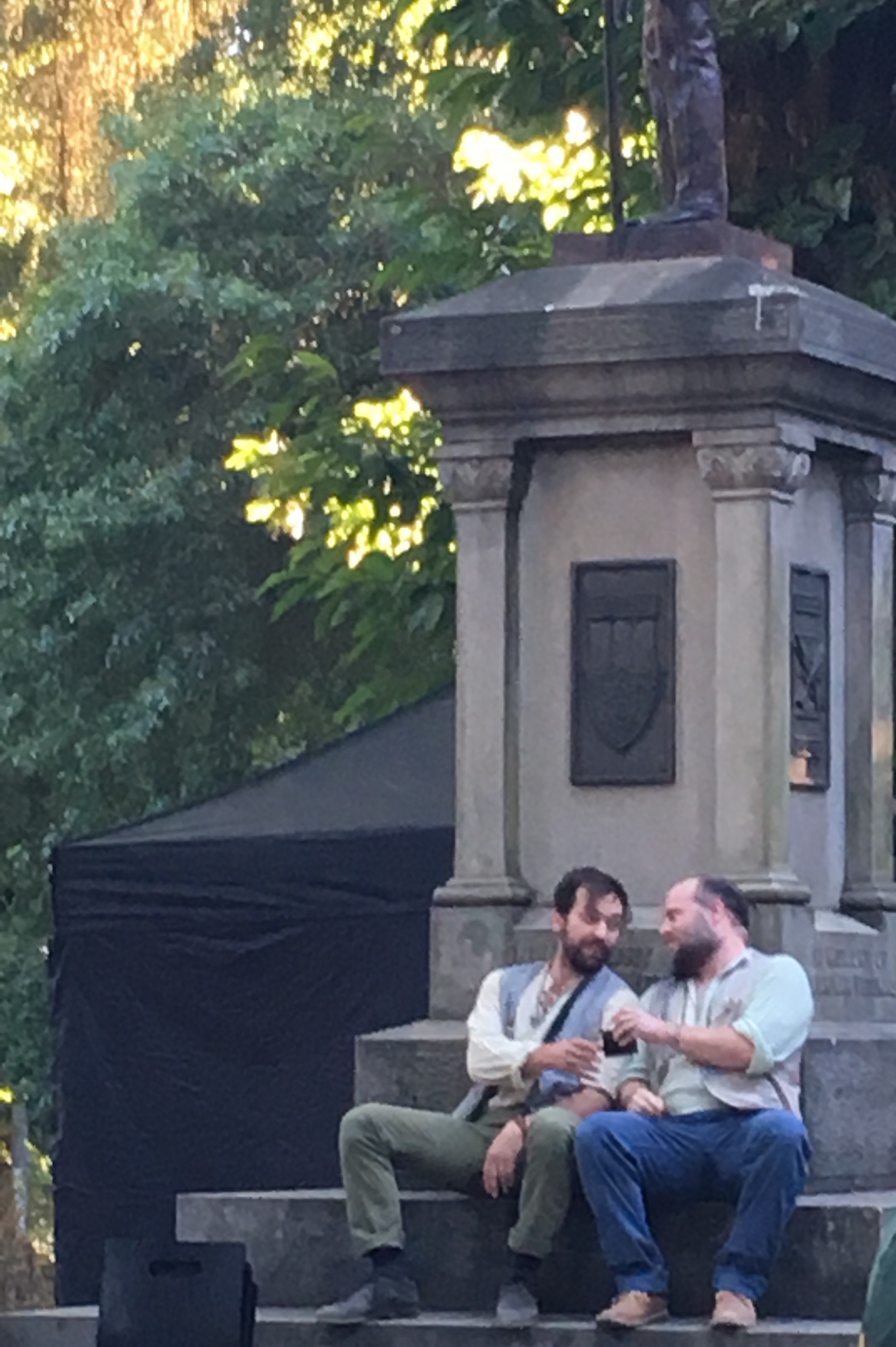 By the time the play was over and more than a few bodies lay on stage, night had fallen and we applauded and packed up in the dark. It was still very warm and the walk home through the neighborhood was a good place to talk about the play and fill in plot points we had missed.