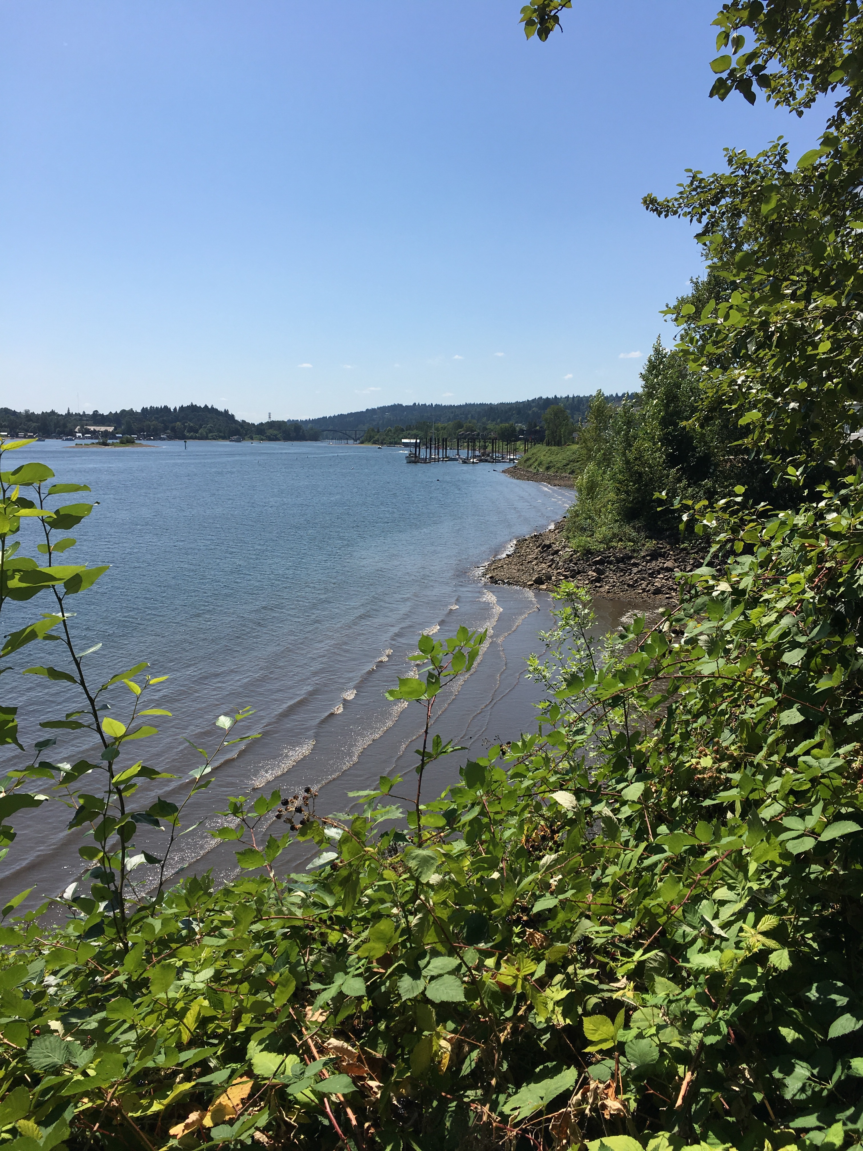 The second thing I noticed was how green and wild this part of the Willamette was. Blackberry bushes, cottonwoods, and all sorts of brambles flourished along the path. Sometimes there was no sound at all except the lapping of the river and the breeze in the trees.