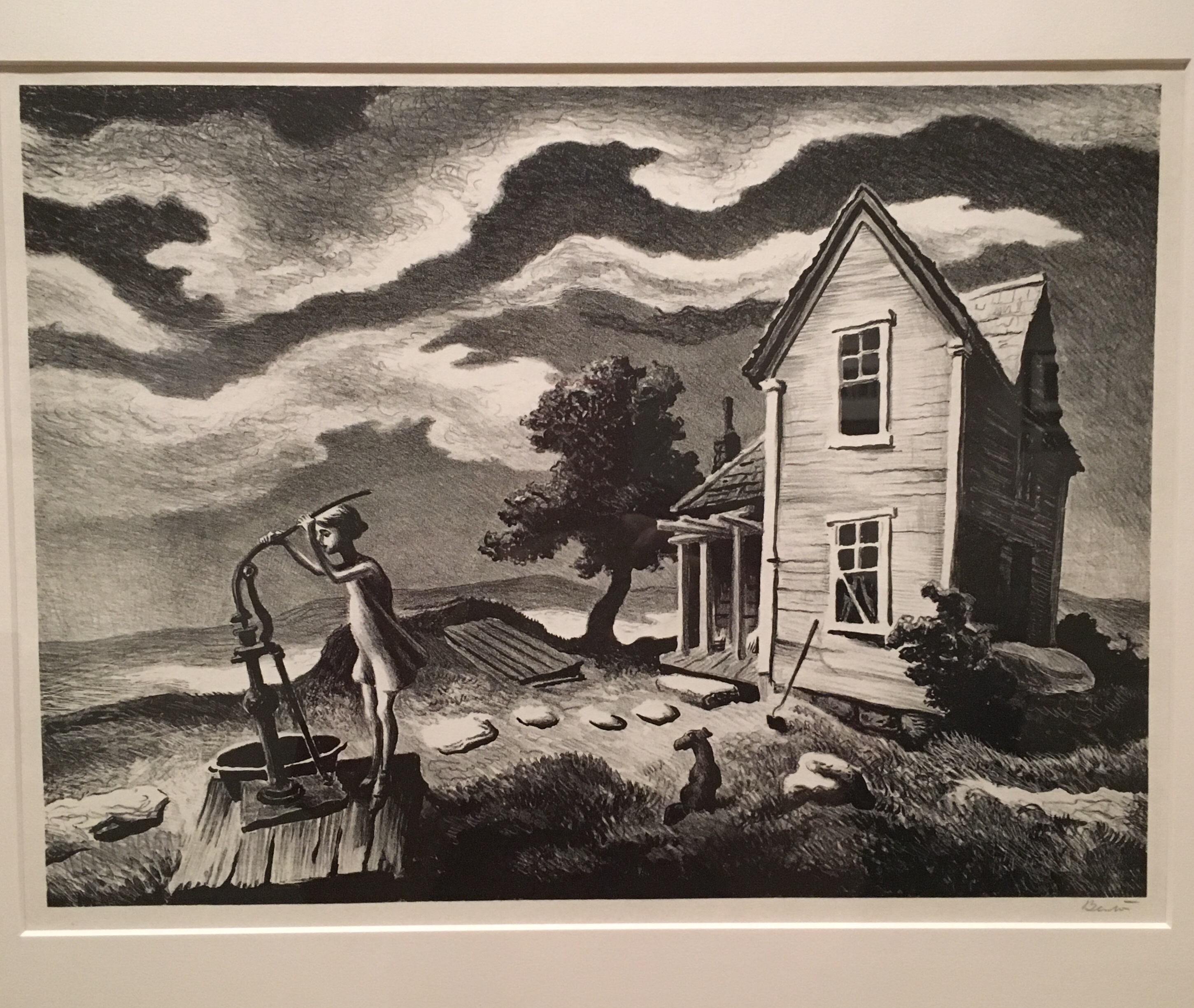 On our way up the stairs, we ran into an historic collection of lithographic prints from the 1930s and 40s, by folks I had heard of, like Thomas Hart Benton, and some I hadn’t, like Peggy Bacon. These works were created as part of a government project to depict American life, and show so much humor and movement that they look like sketches, not prints from stone. They were cartoon-y and delightful.We took a little break before heading off to the next part of our adventure, which I will tell you about next week!