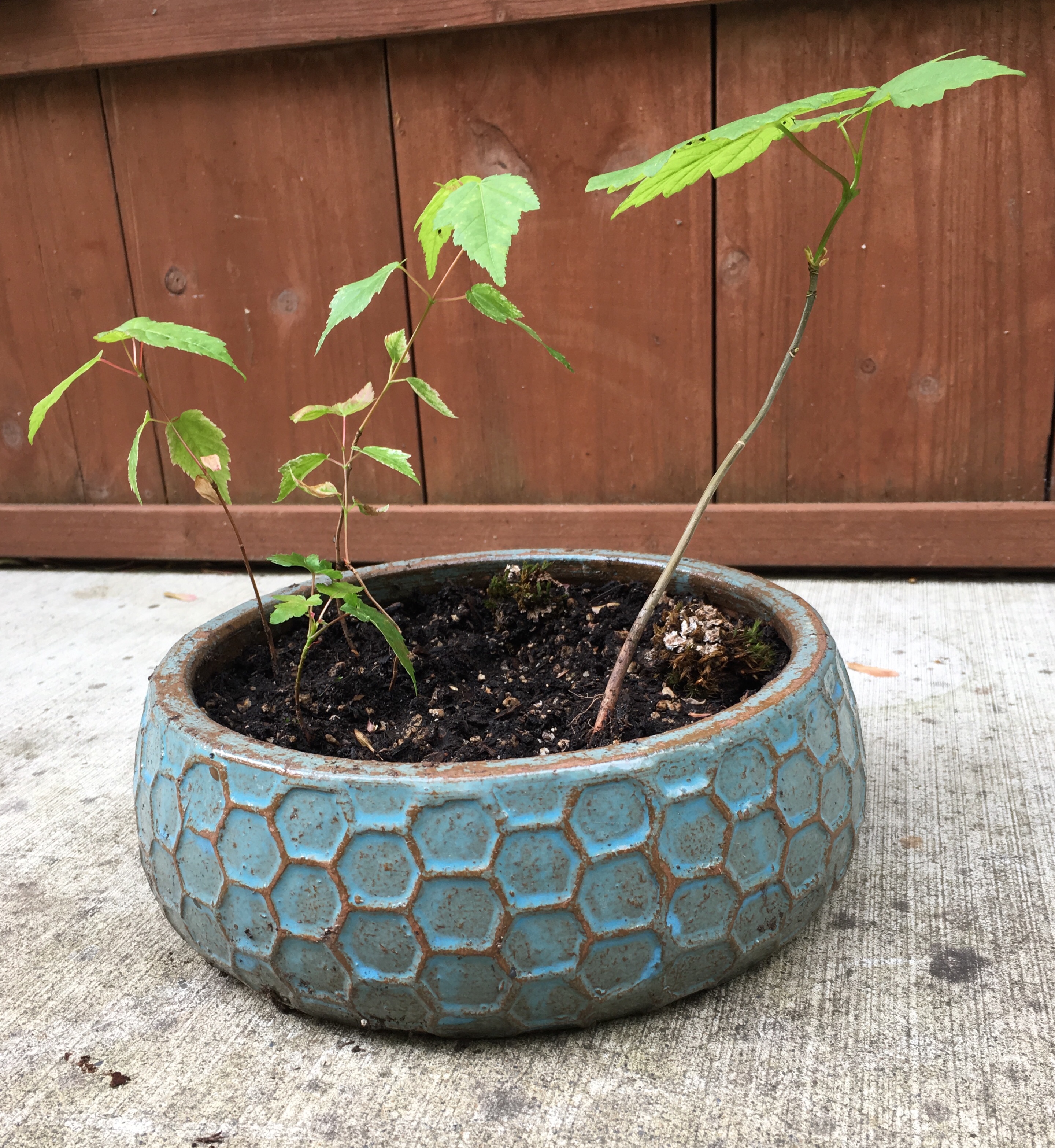 The other day, I walked a mile down Stark (stopping for lunch at the Belmont Station) to choose the right pot for a new project: a bonsai forest. Last winter I picked up a few birch and maple seeds and stuck them in pots, and now I have seedlings. It seemed like a perfect time to begin.