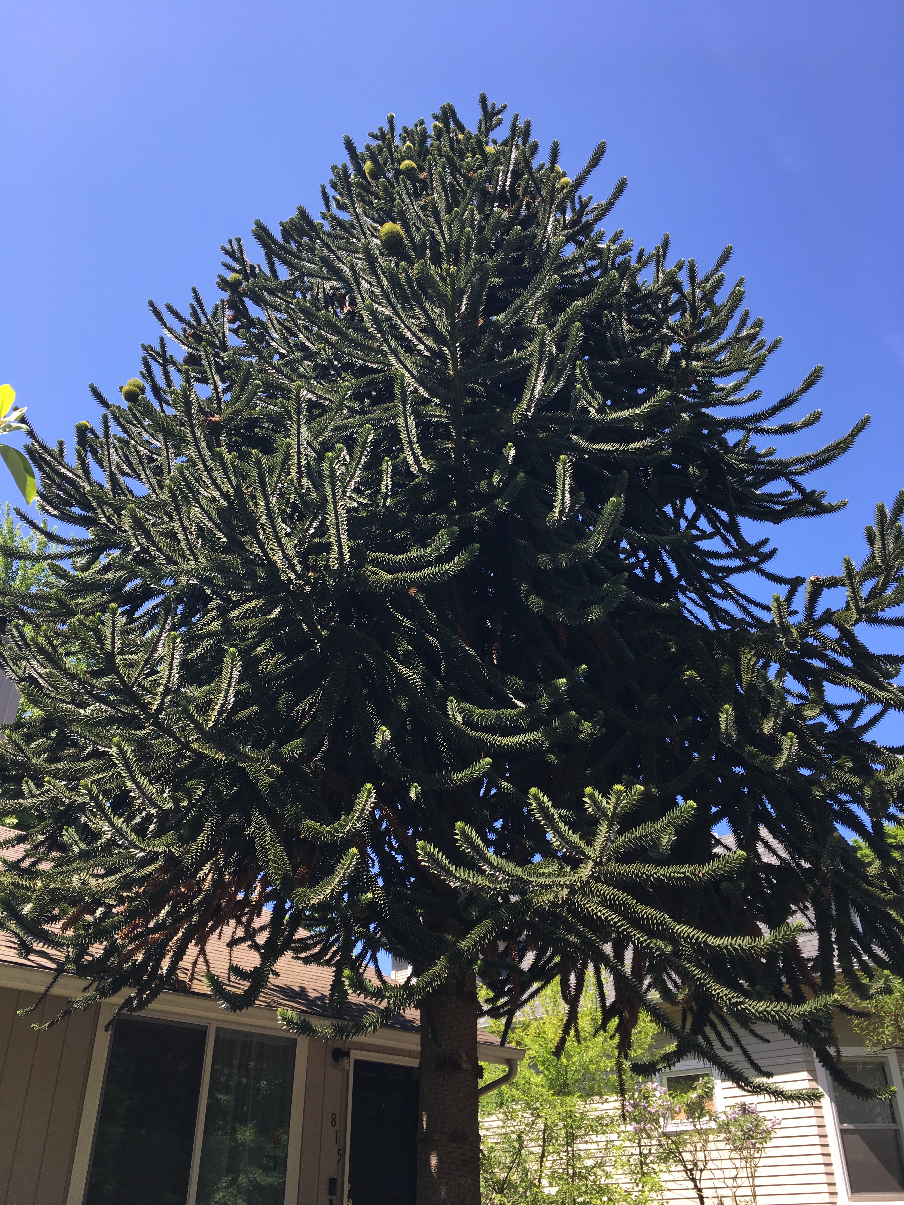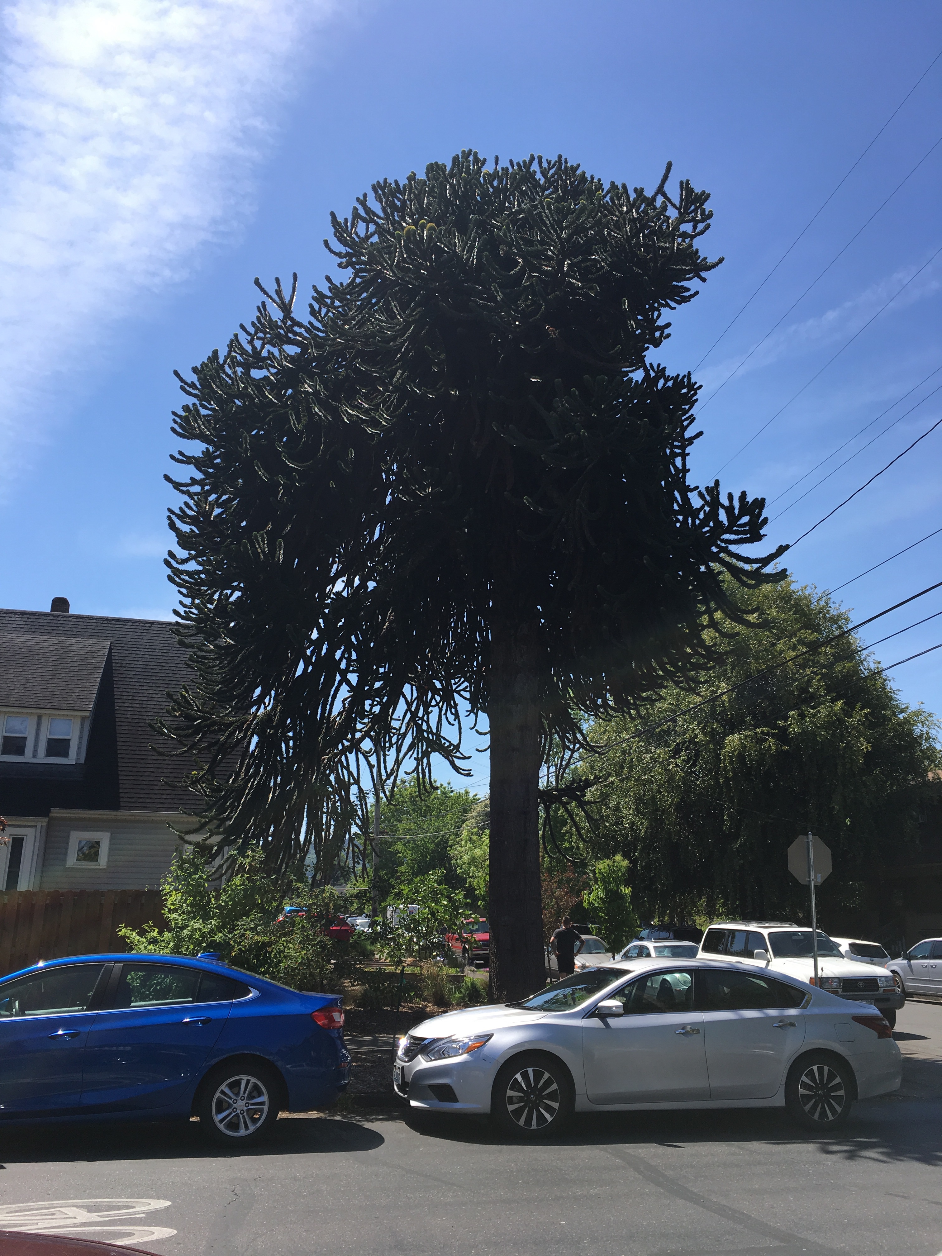 These trees, which grow up to fifty feet tall, have crooked branches that are covered in very pointy spikes. I imagine that’s how they were named…no one could see how even a monkey could climb one! They are native to the mountains in Ecuador. So why are they so popular in Portland?
