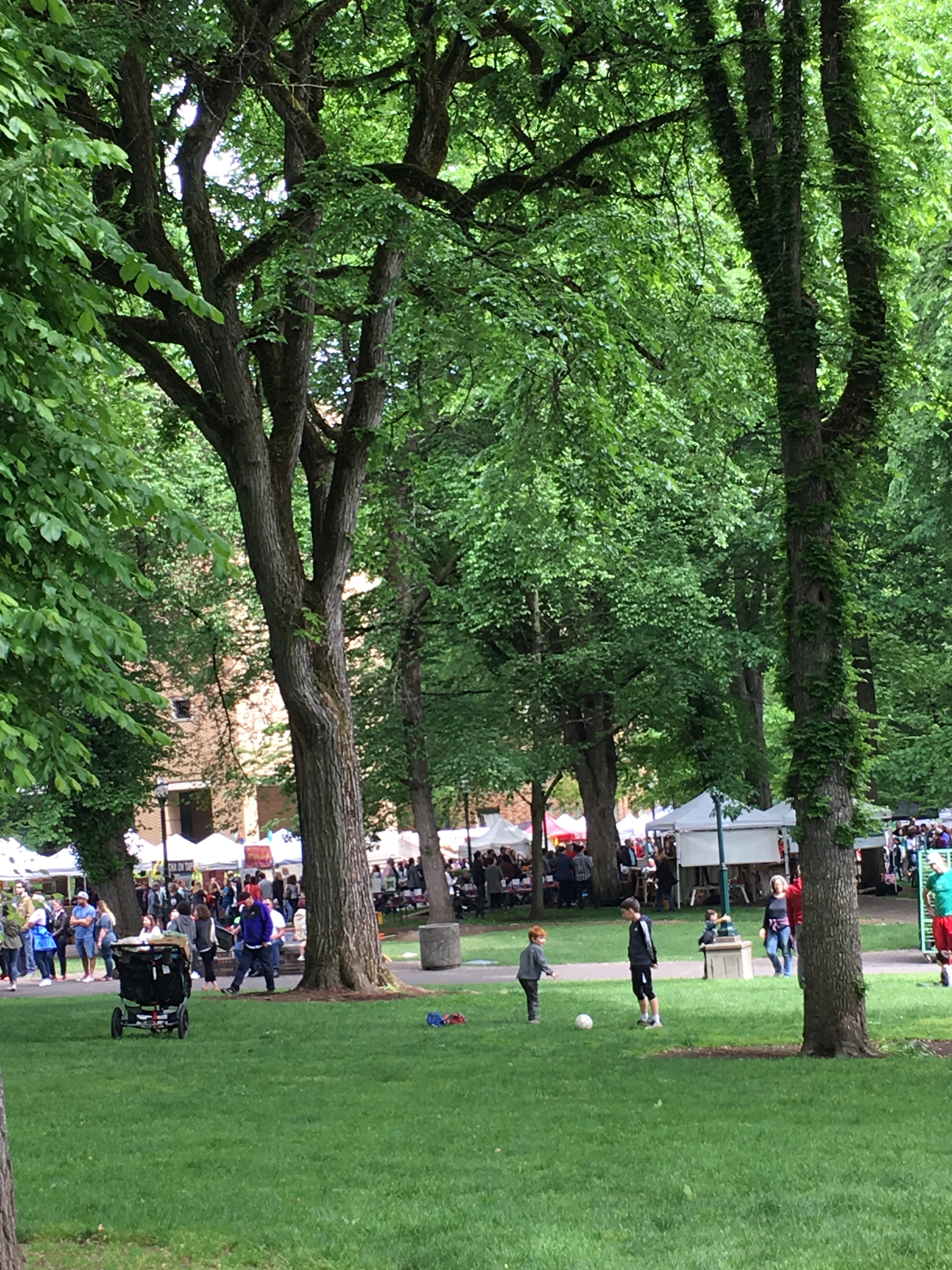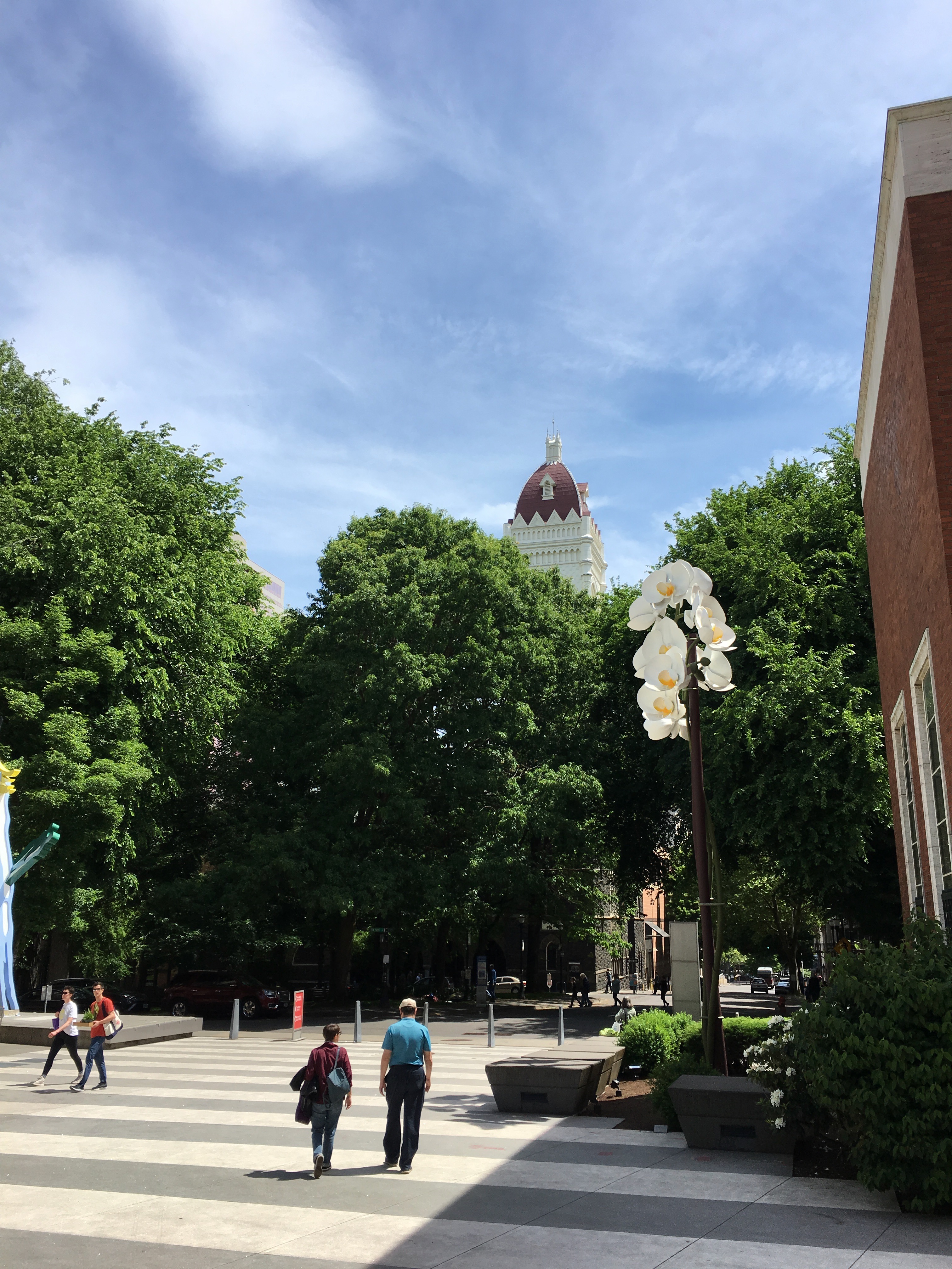 After we saw the beauties of the Farmer’s Market, we walked along the Park Blocks, enjoying the dappled sun and people watching. Auntie Bridgett hadn’t found lunch at the market, so we stopped in to the Portland Art Museum cafe to get her a salad.