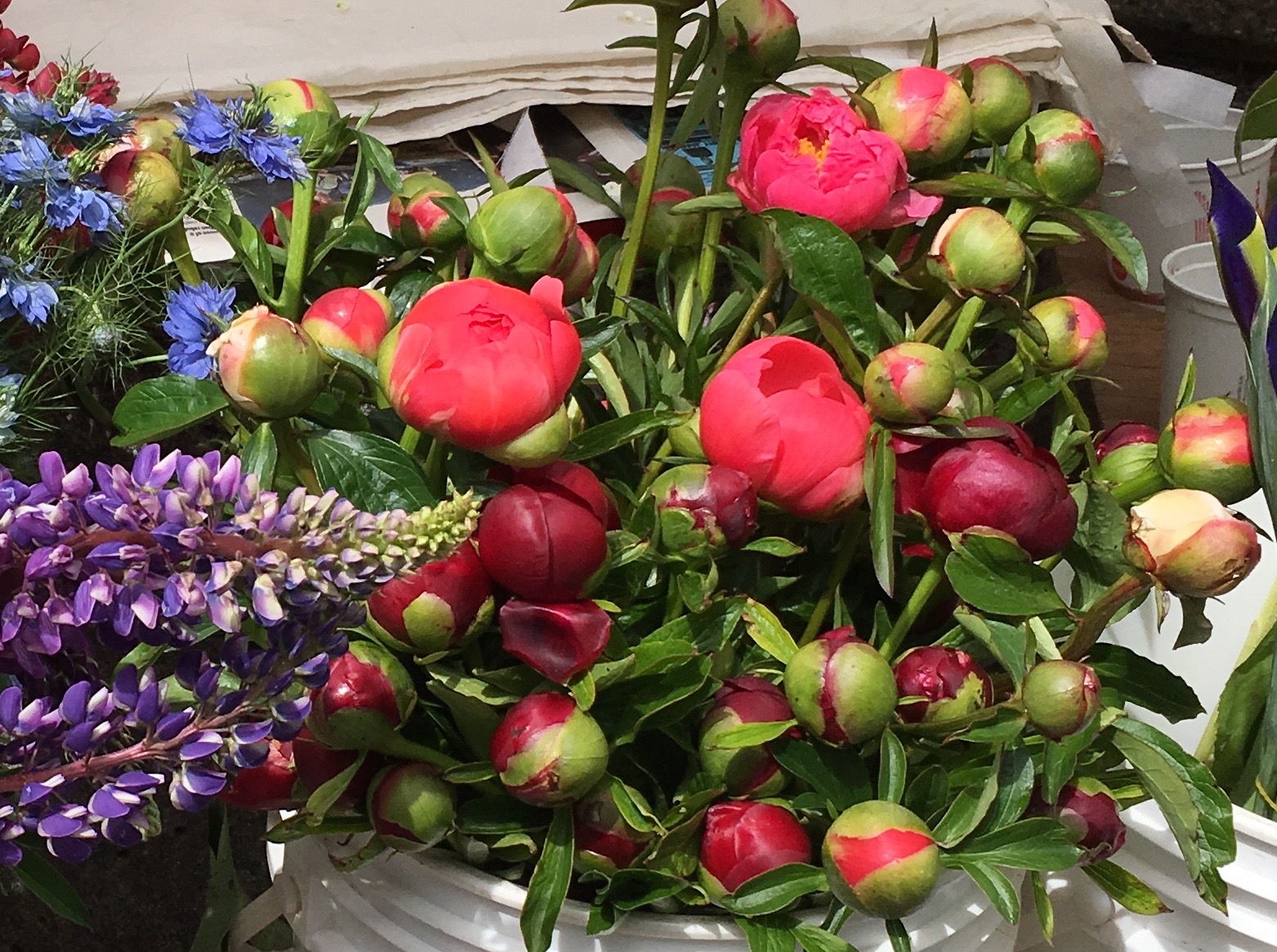 What makes this market so special is that, while it hosts hundreds of producers and thousands of customers, it is just a few feet in any direction from grassy spots where irises grow and bees find roses. The intertwining of urban and agricultural, hard surfaces and soft foliage, is magical.
