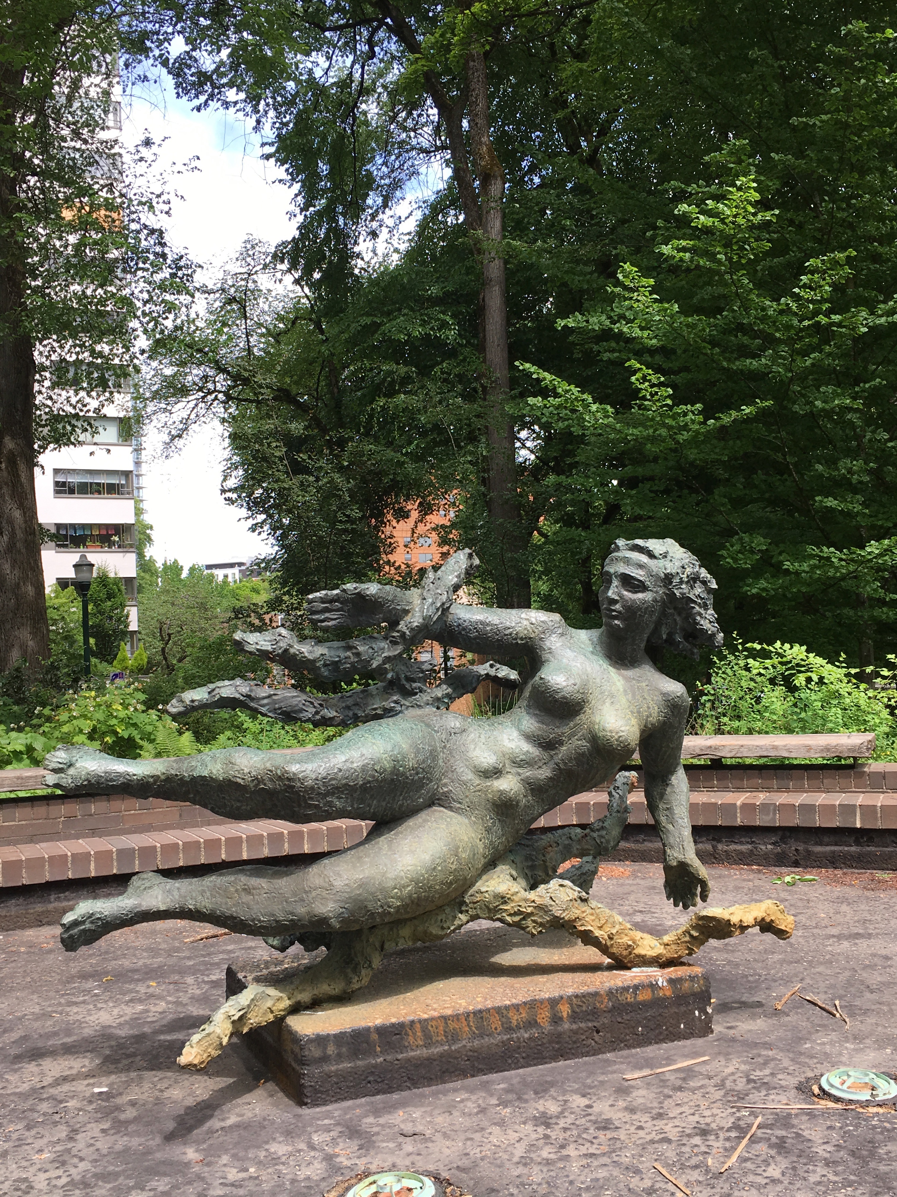 Now that we are into Late May, the weather is becoming more predictably pleasant, and all the wonderful summer events are happening. Today we took our Magic Bus (the number 15) downtown and walked to the South Park Blocks. These are about 7 blocks that were set aside as open space when the city was first laid out in the 1850s. There are lawns, tall old elm trees, and two of our favorite statues: Mr. Lincoln and Colonel Teddy Roosevelt.