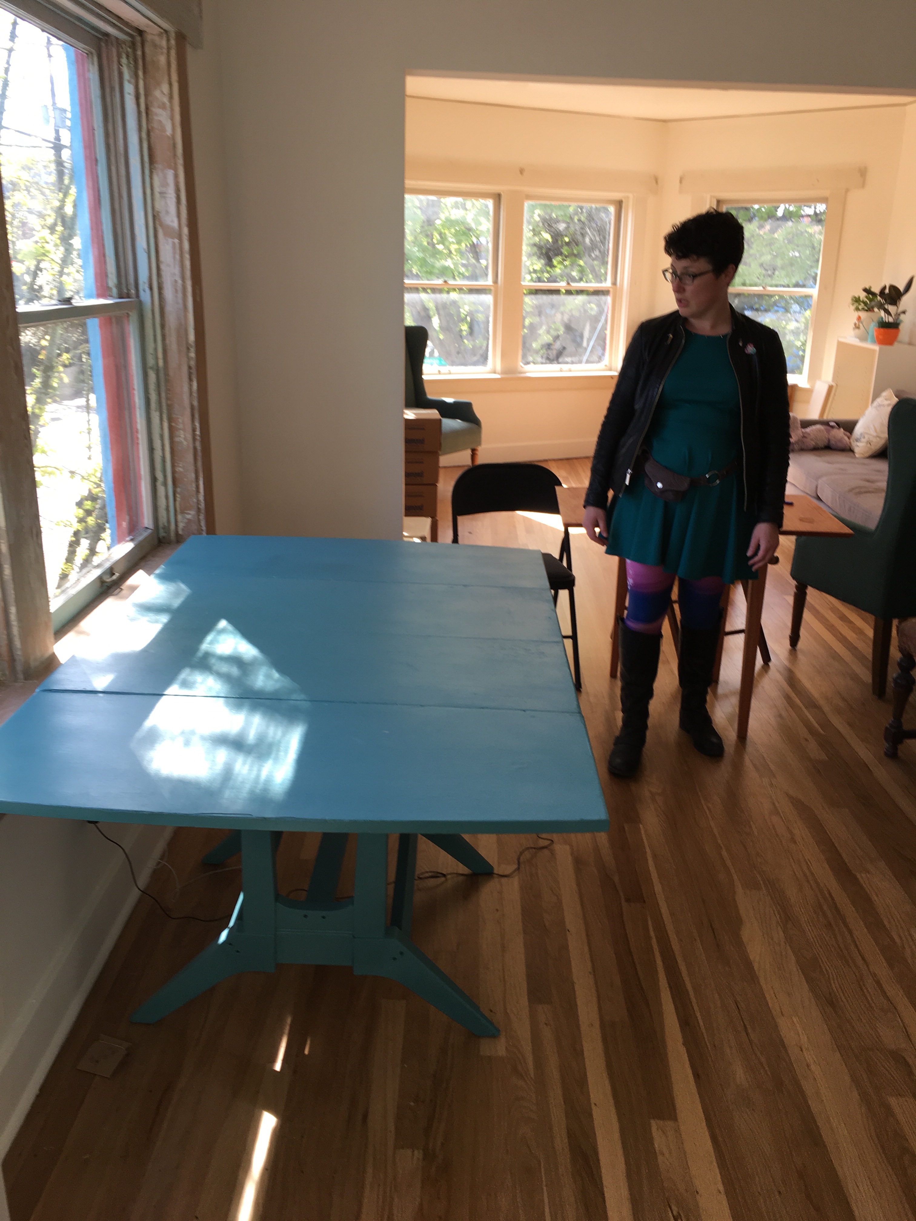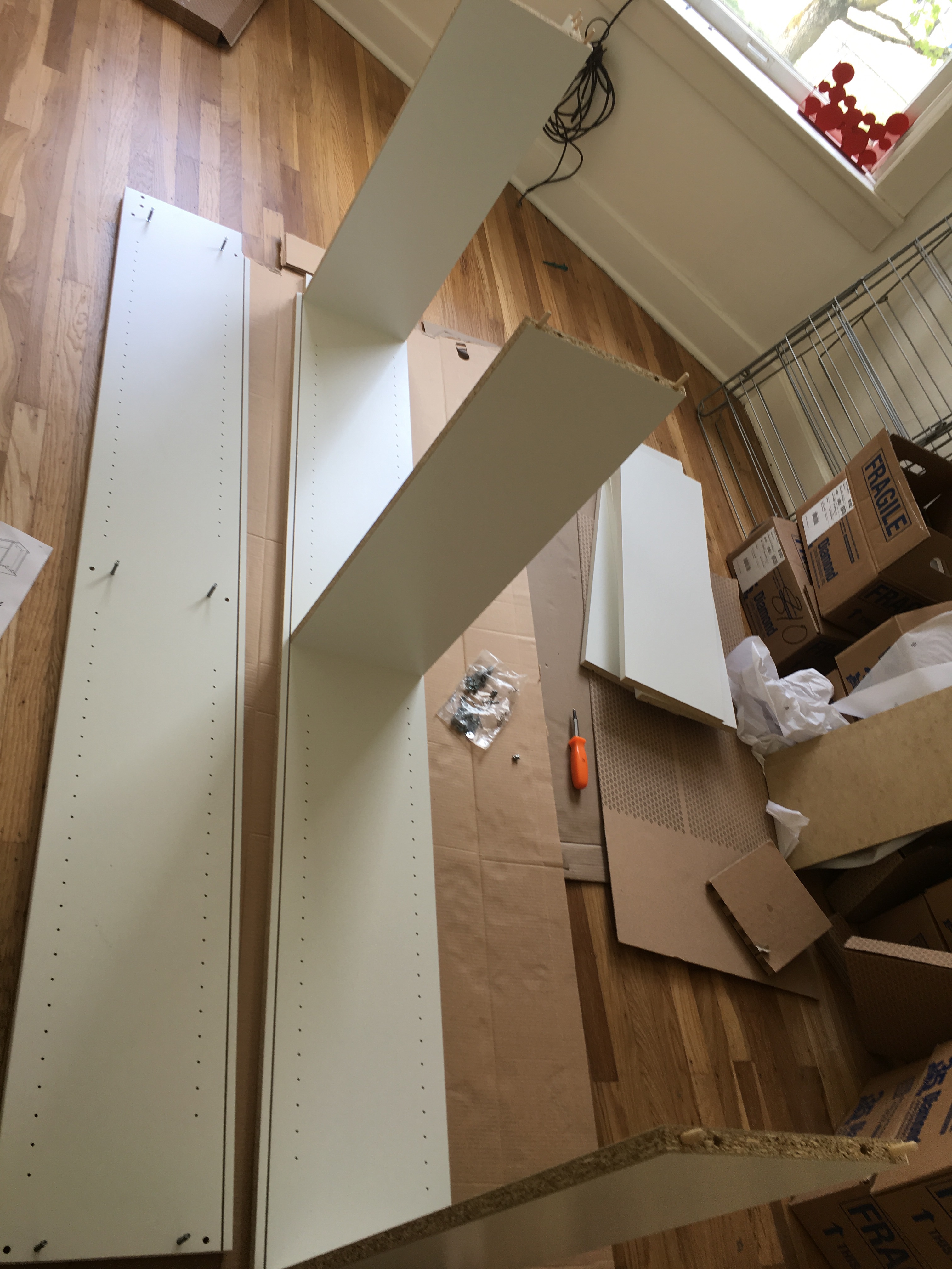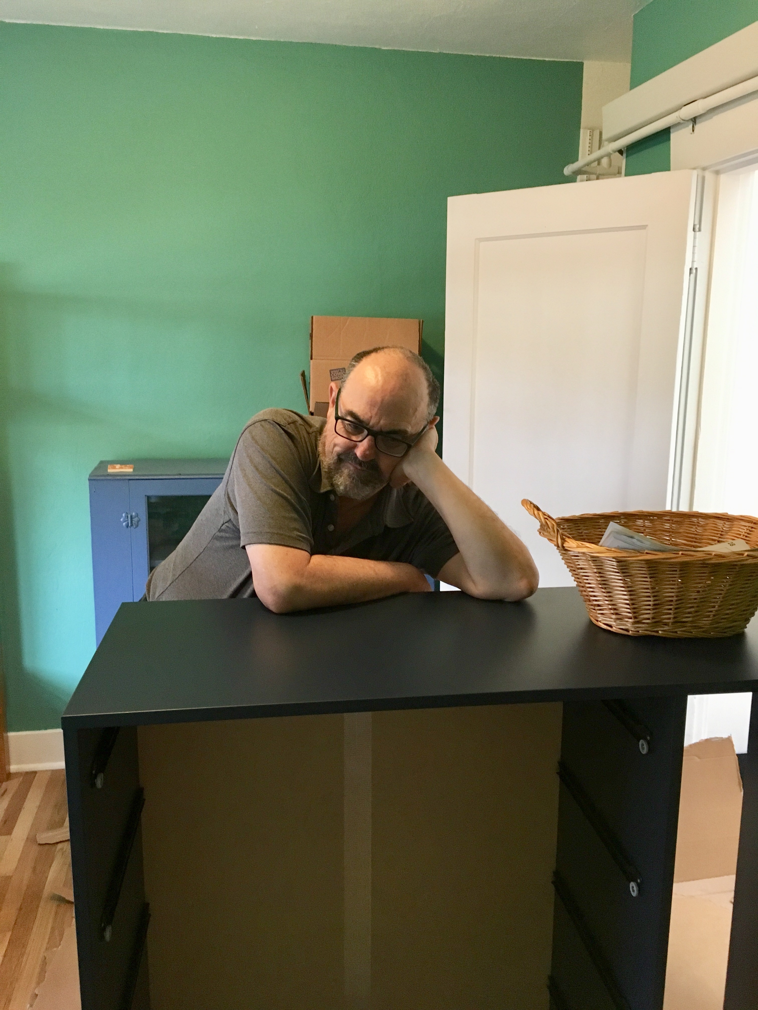 Today I went back to build the drawers! They were surprisingly easy, and I had time and energy left to bang out a few tunes on the old piano that came with the place. Then lunch at “Chickens and Guns” (the guns are side dishes…roast potatoes, salads, etc.) food truck and home on the bus.
