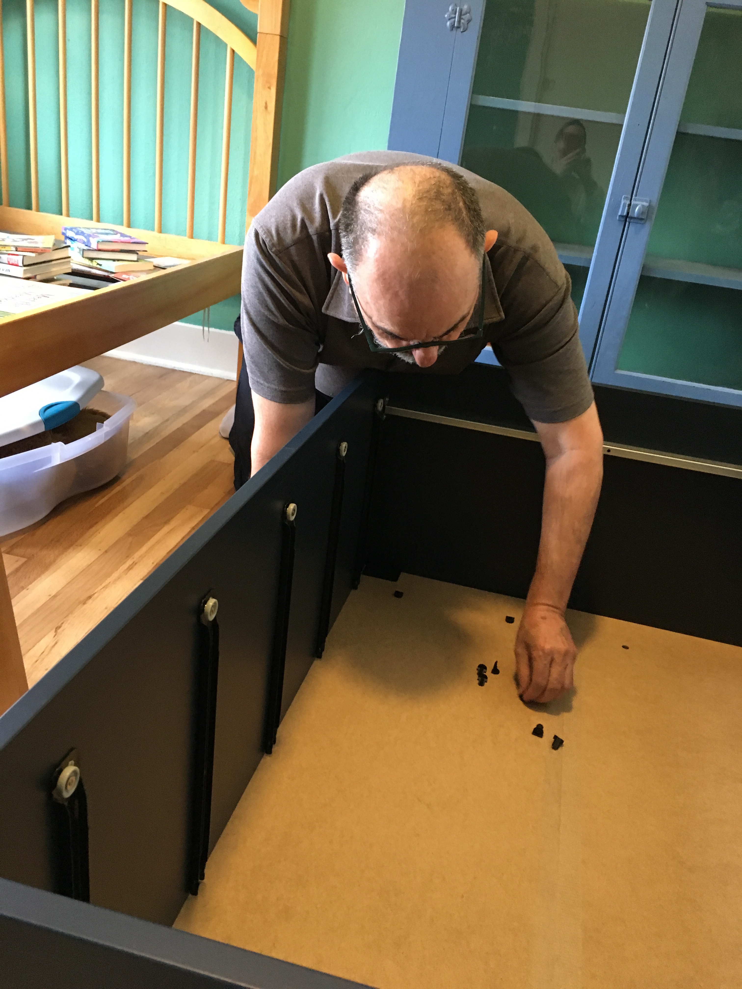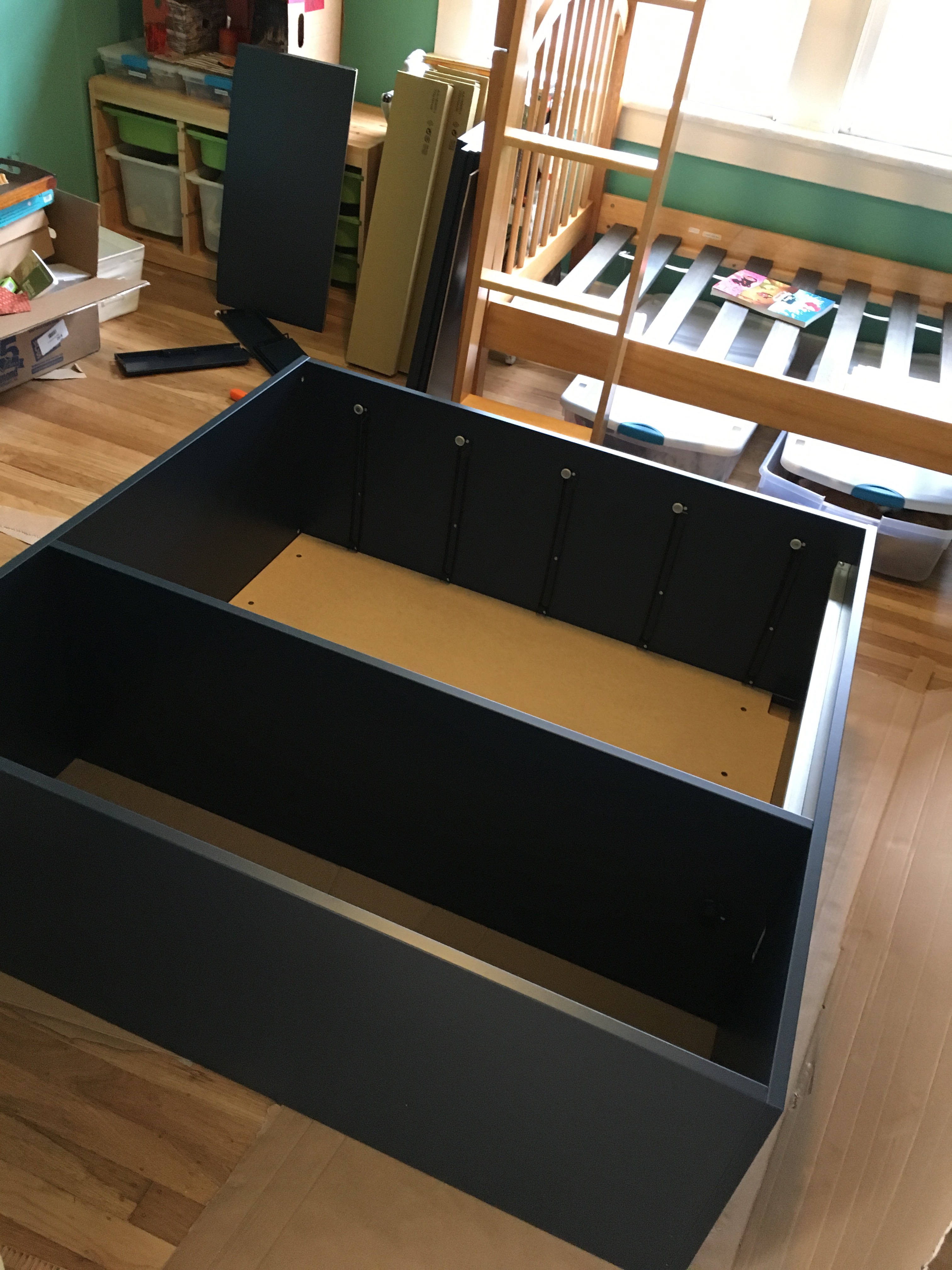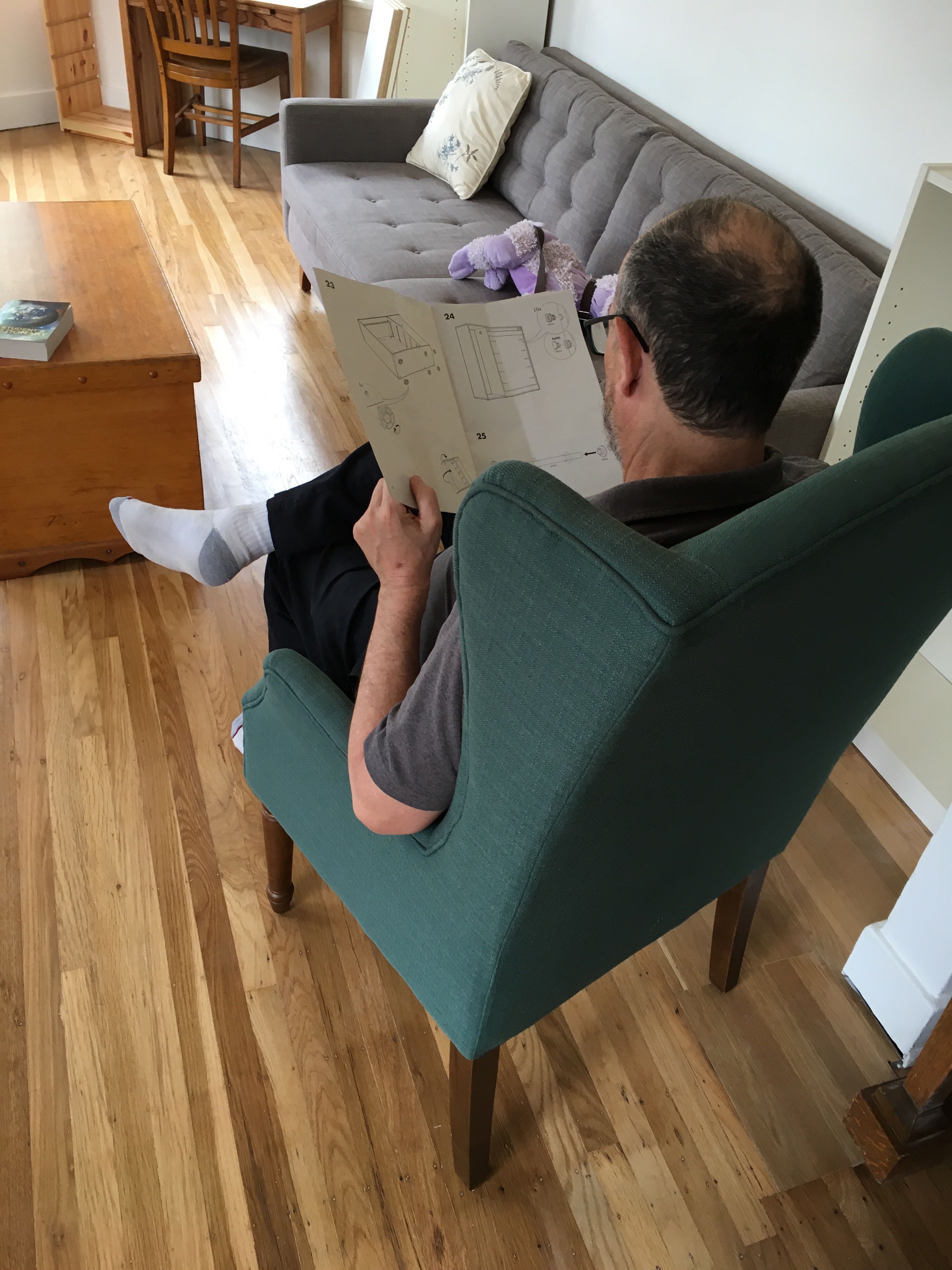 Today I went back to build the drawers! They were surprisingly easy, and I had time and energy left to bang out a few tunes on the old piano that came with the place. Then lunch at “Chickens and Guns” (the guns are side dishes…roast potatoes, salads, etc.) food truck and home on the bus.