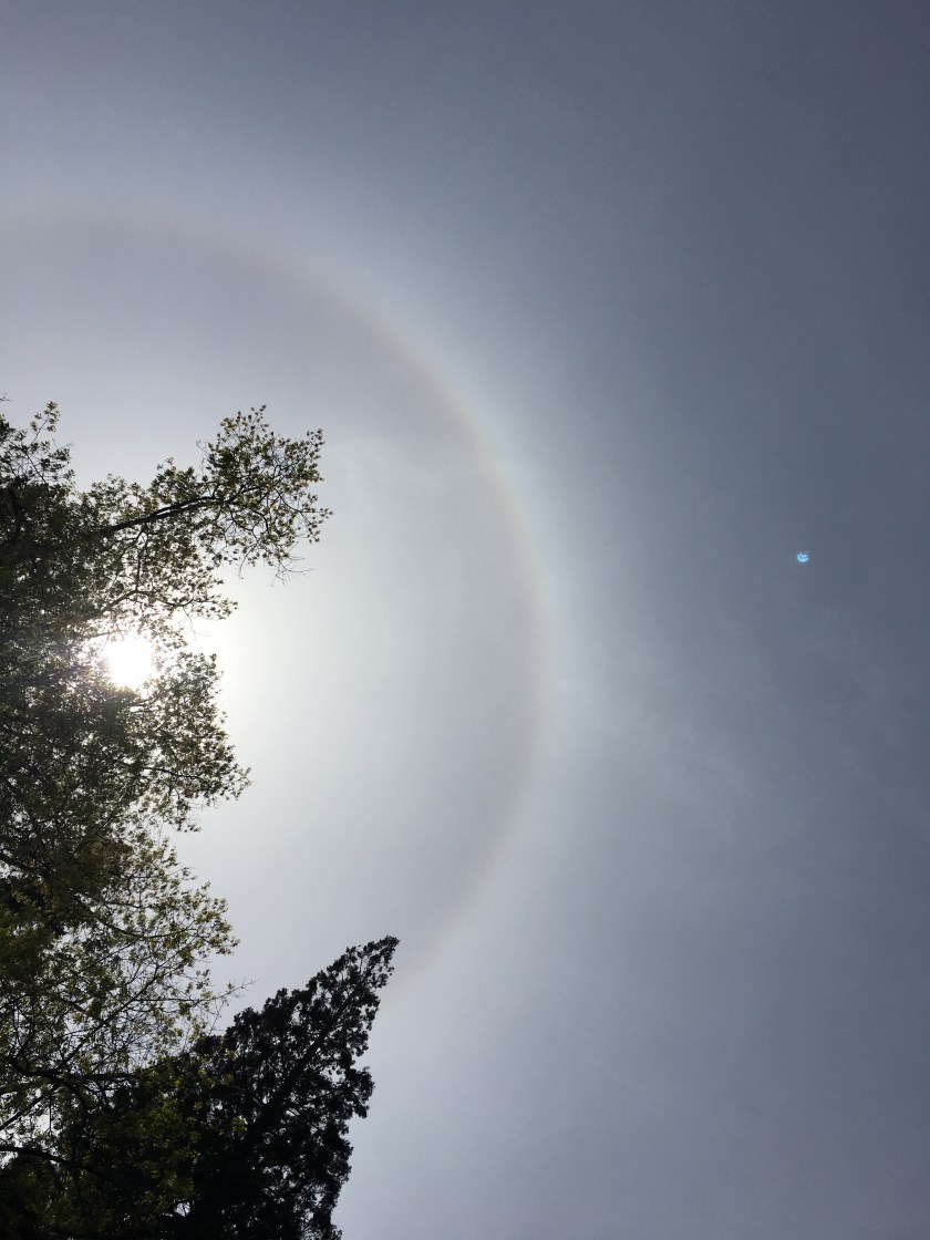 The sun had a halo, which means that somewhere in the atmosphere there were ice crystals. The barking of dogs and encouragement of their owners echoed from the dog park area. “Don’t go in the lake, no, please don’t….” Seconds later, “Oh, good girl!”