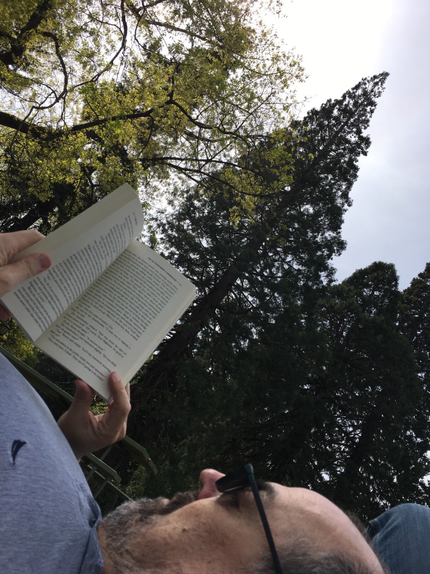 It was another lovely sunny day today! Auntie Bridgett had to work at the SideStreet Arts Gallery, so Grandpa Nelson and I walked her there, then got snacks at Whole Foods up on Burnside, and walked back through Laurelhurst Park. We found a lovely piece of grass close enough to the lake to hear the ducks, and stretched out on your striped blanket with our books.
