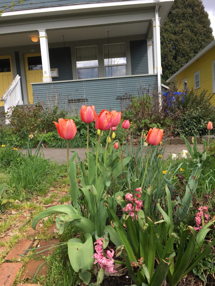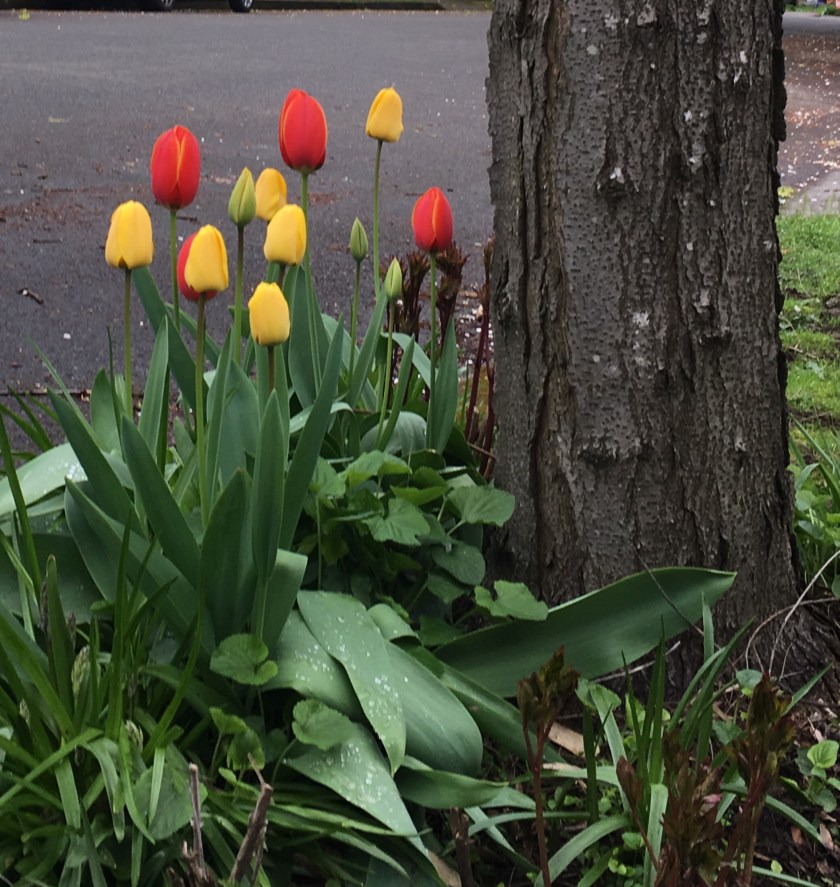 This morning we went for a walk, appreciating all the tulips in the neighborhood. The tree blossoms have faded, and the wisteria are just beginning, but the tulips are in full bloom, and they are amazing.
